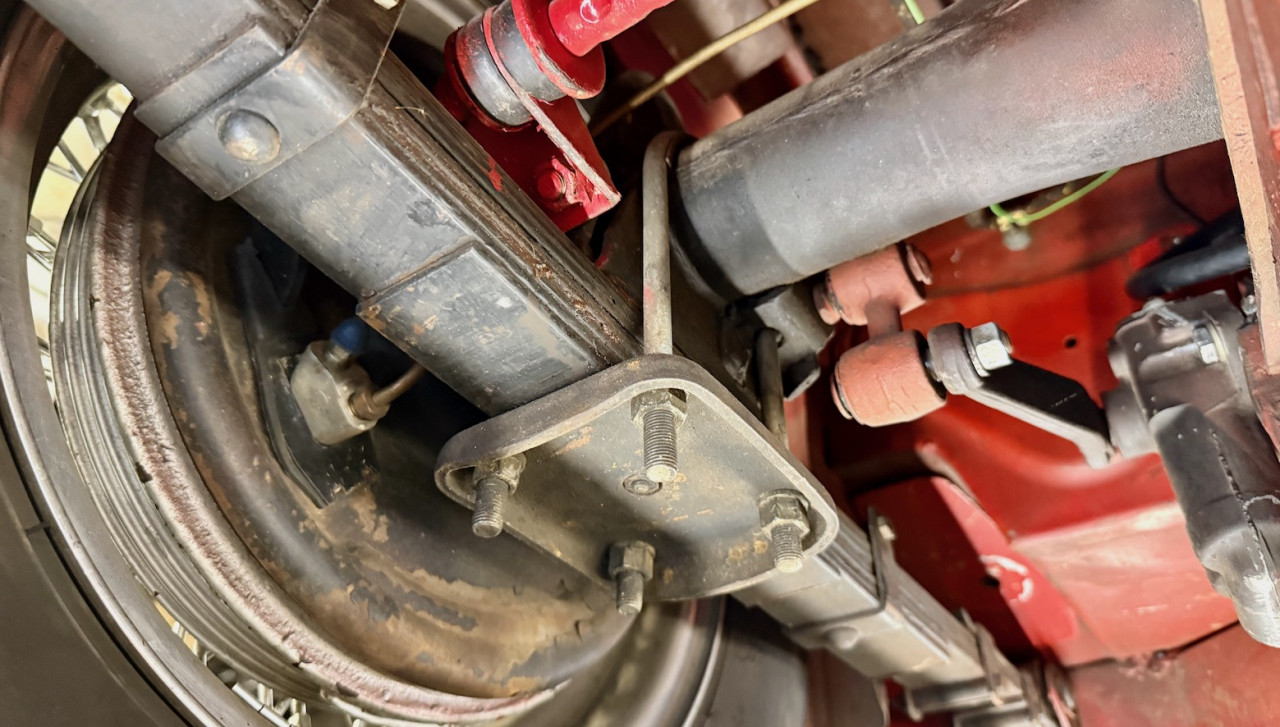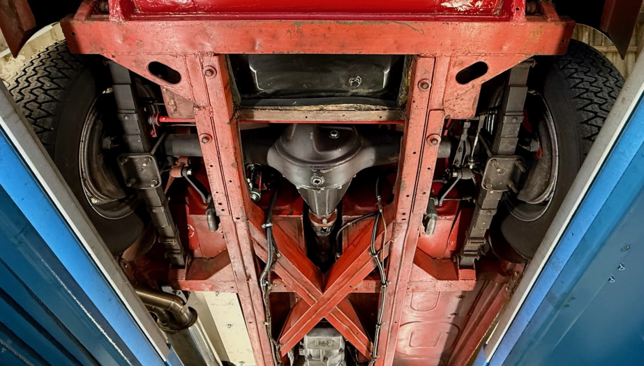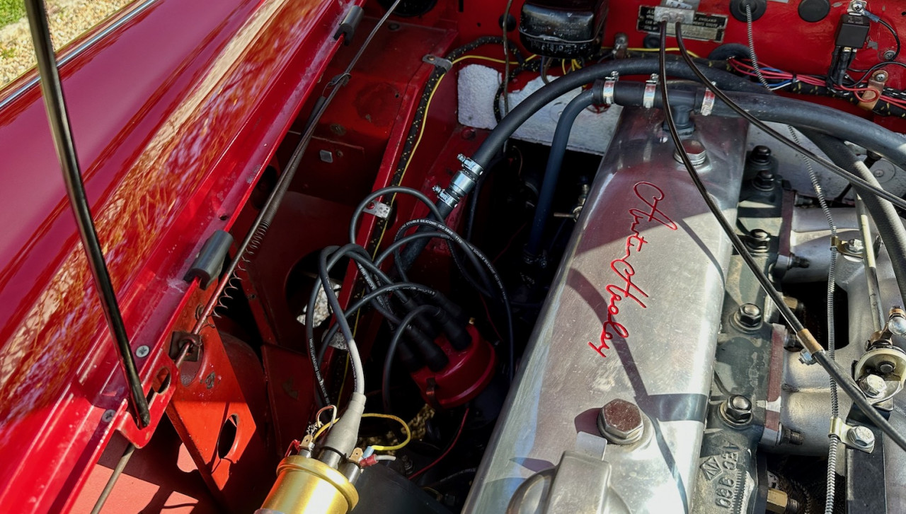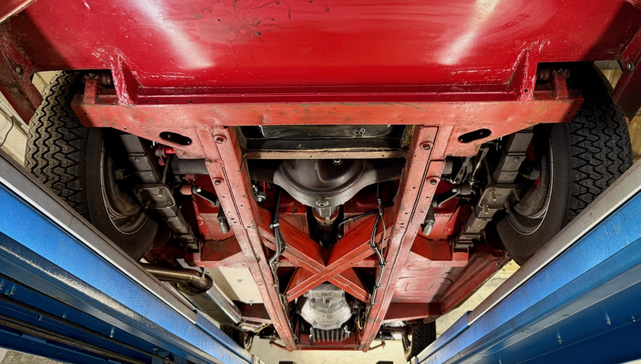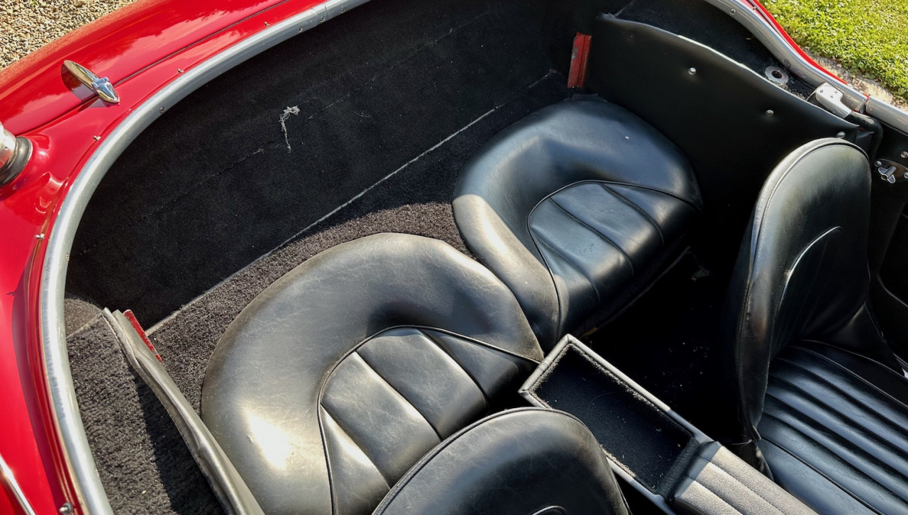 Au niveau carrosserie, la voiture est saine et la peinture est très belle, certainement faite aux US.. Les dessous sont sains, la peinture de couleur rouge Colorado est belle, pas de besoin de la refaire. Les alignements de porte sont parfaits, tout est en ligne, élément important à prendre en compte lors de l’achat d’une Austin Healey.
