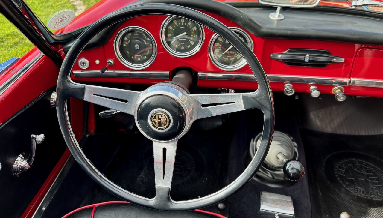 Mr G a cette voiture depuis 22 ans et fera en tout 43 000 km jusqu’à ce jour. La Giulia Spider est suivie de façon régulière avec un entretien précis, des travaux de chromage en plus, les factures sont là pour en témoigner. En 2015, le propriétaire déménage en région nantaise, la voiture change d’immatriculation. Elle sera suivie chez Classic auto passion dans le 44.