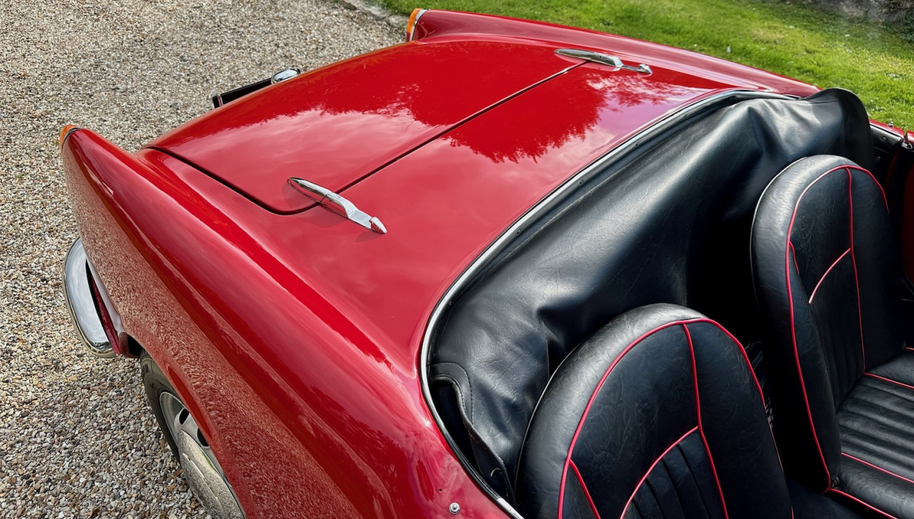 Outre la couleur qui a changé, le client passera au Garage Pierre Louis pour une préparation moteur en mettant 2 carburateurs Weber, la capote est neuve, le client a acheté un Hard Top, le pare-brise a été changé, la sellerie est neuve, les suspensions également. La restauration a coûté 140 000 francs.