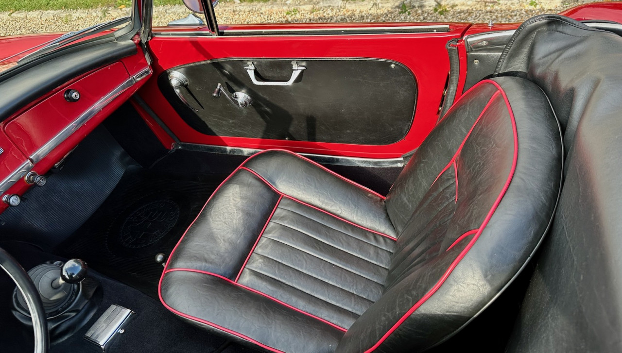 En 2017, la sellerie est refaite ainsi que les moquettes avec un passepoil rouge sur simili noir, changement des mousses.