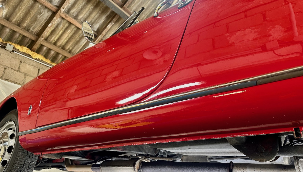 La voiture va être intégralement restaurée, démontage de la caisse, décapage, passage dans un bain, préparation peinture, peinture et poli lustré, changement de nombreuses pièces de tôlerie. C’est l’occasion de refaire également la mécanique : remplacement des chemises pistons, des coussinets, vilebrequin, chaînes de distribution, rénovation de la culasse, réfection des freins. La voiture est repeinte en rouge. En 1997, la voiture passe son premier contrôle technique, c’est la perfection, elle affiche 78 543 km, elle est refaite à neuf.