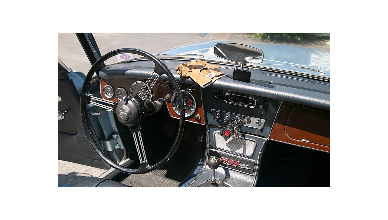L’Healey est complète, l’intérieur est en très bon état, le tableau de bord également. La voiture dispose de l’overdrive, l’embrayage a été fait en 2019 et une révision avec vidange a été faite en 2025.Le châssis est sain, les alignements sont bons.