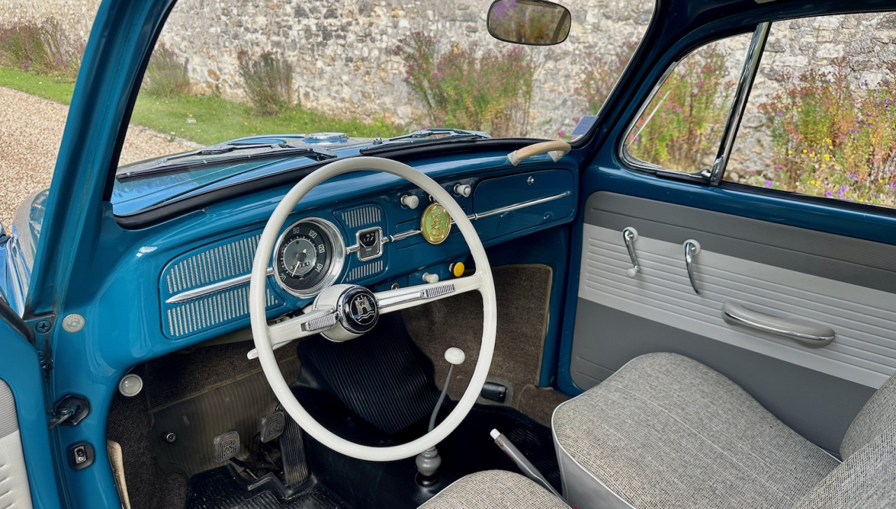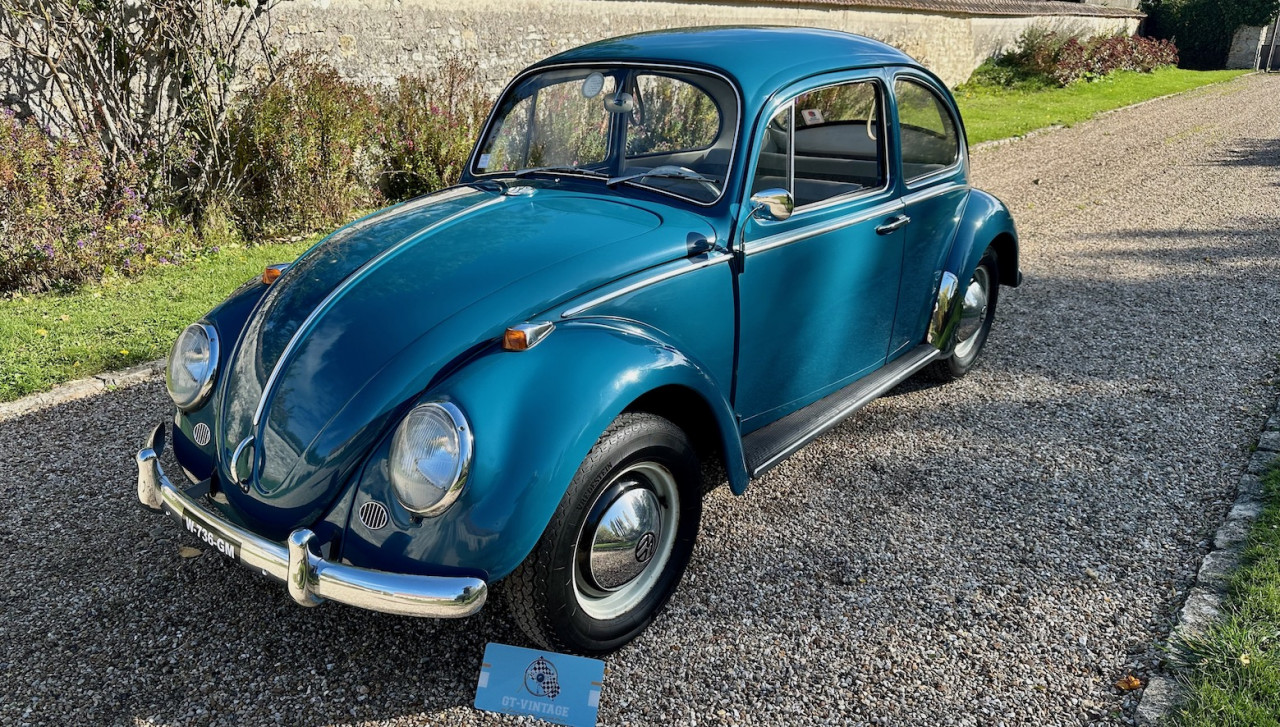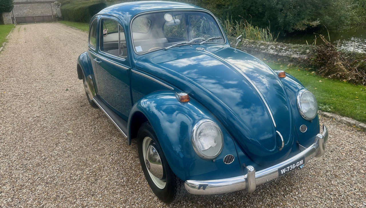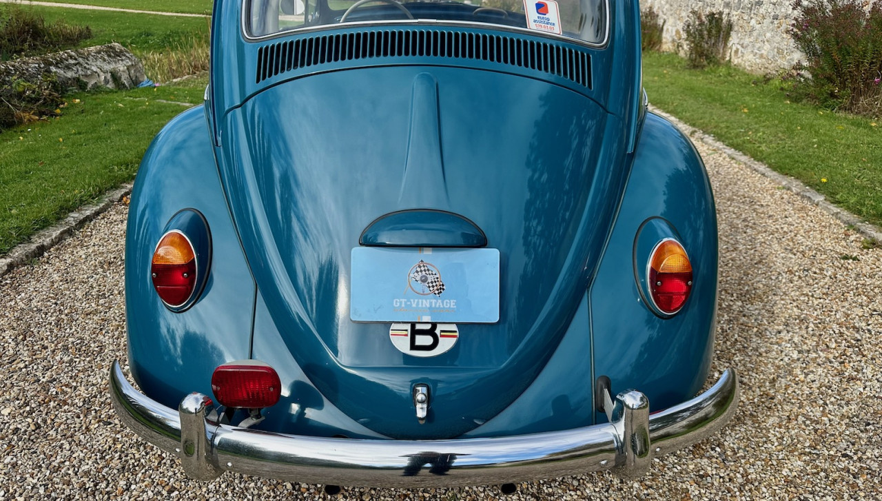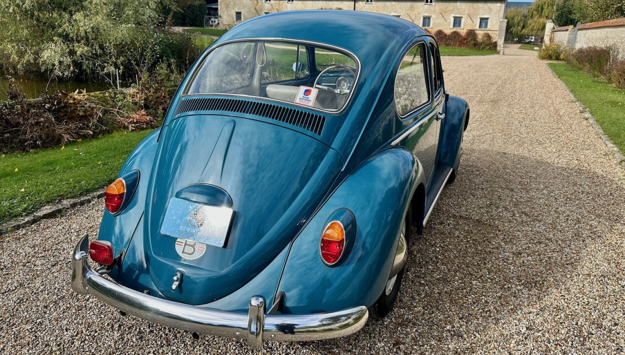 Elle est encore avec son immatriculation Belge, elle a été commandée neuve à la concession VW d’Ieteren à Bruxelles le 26 Mars 1965 , nous disposons de la facture d’achat, de la carte grise d’origine.