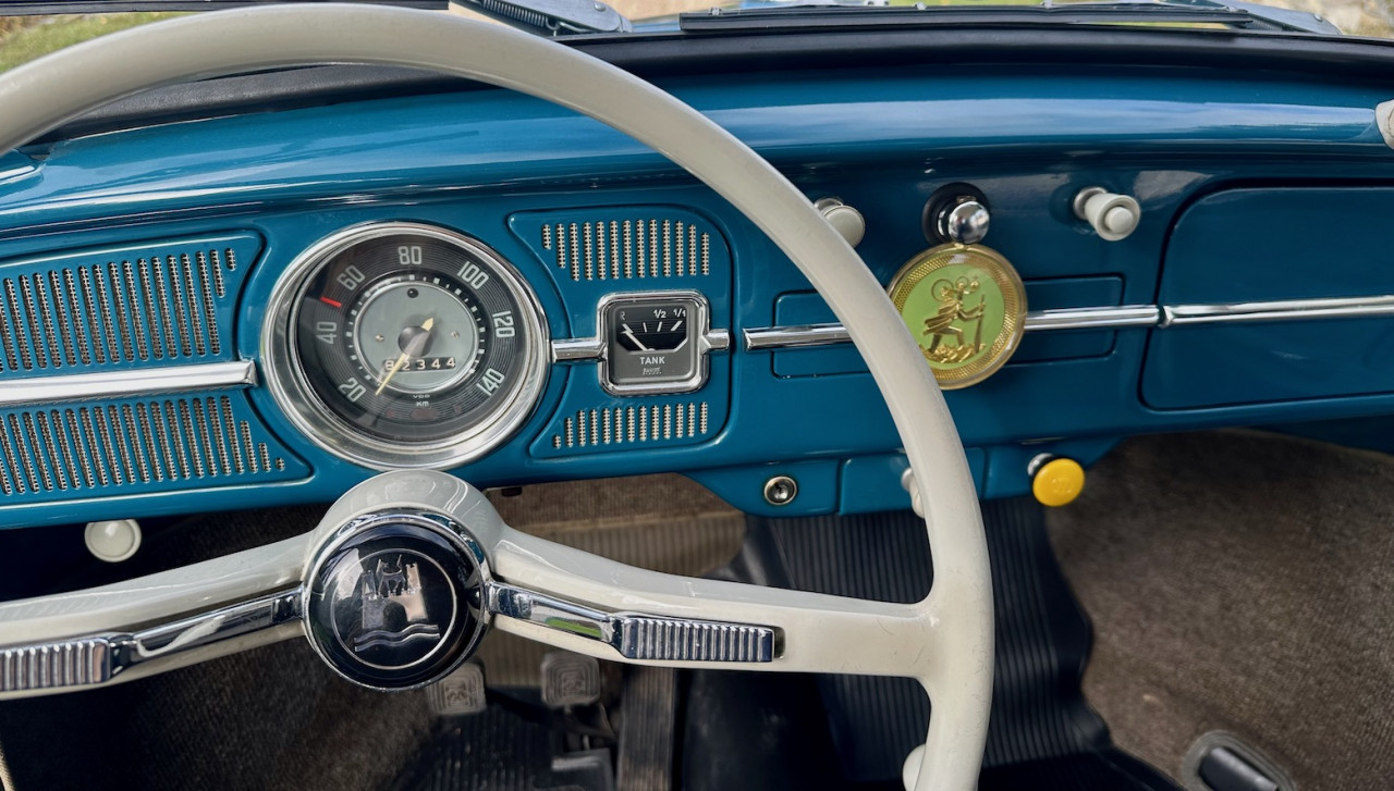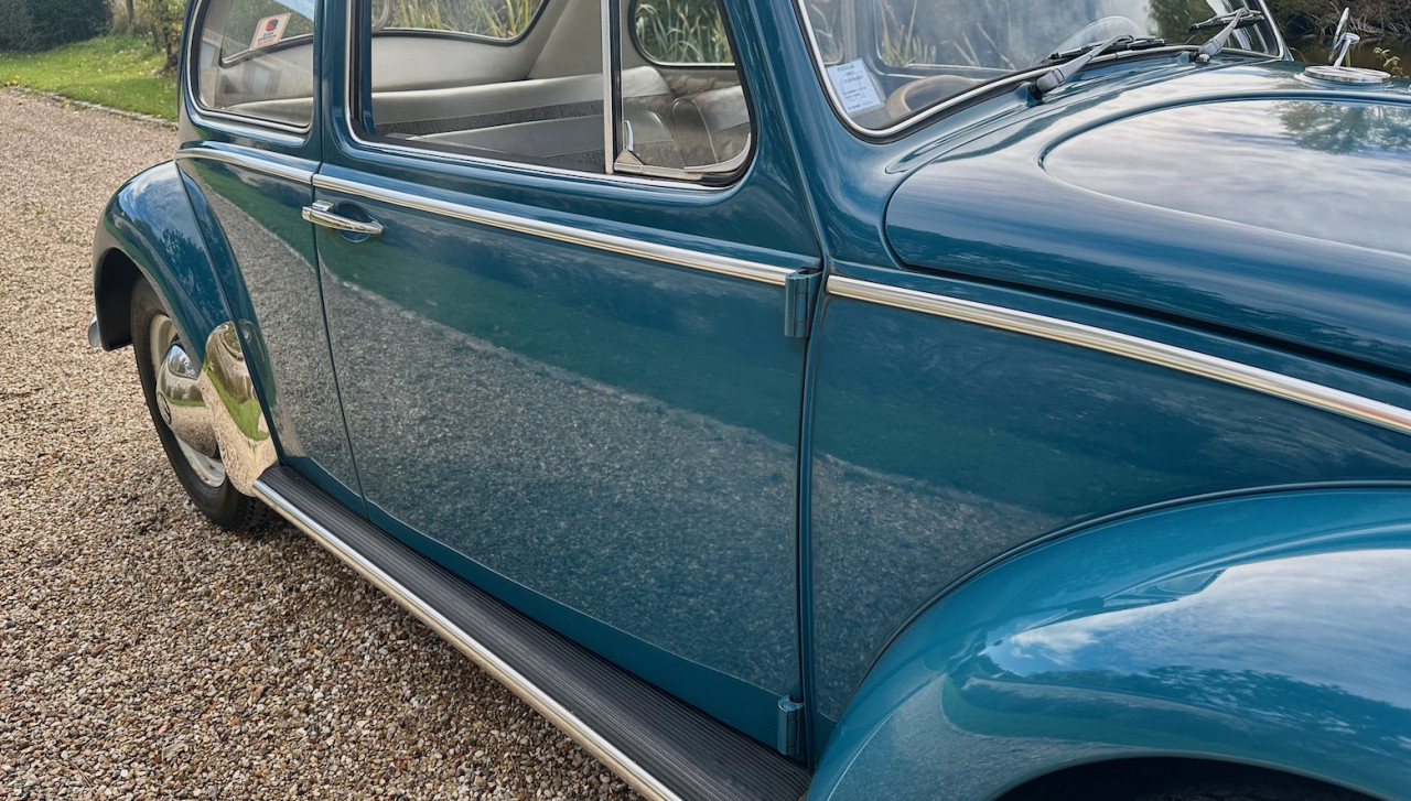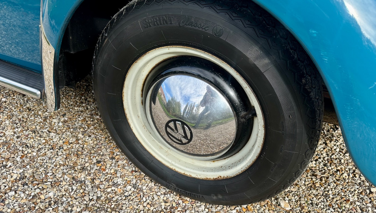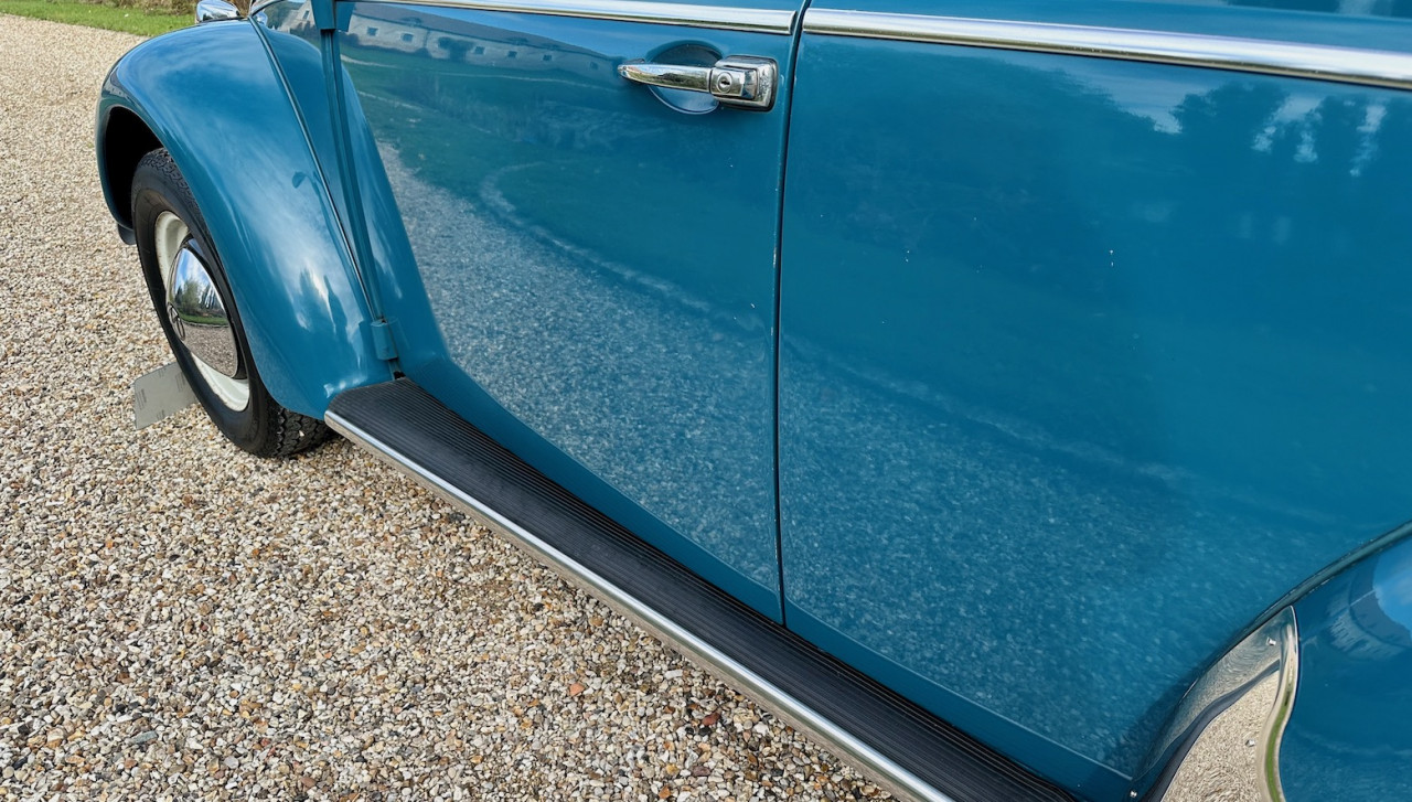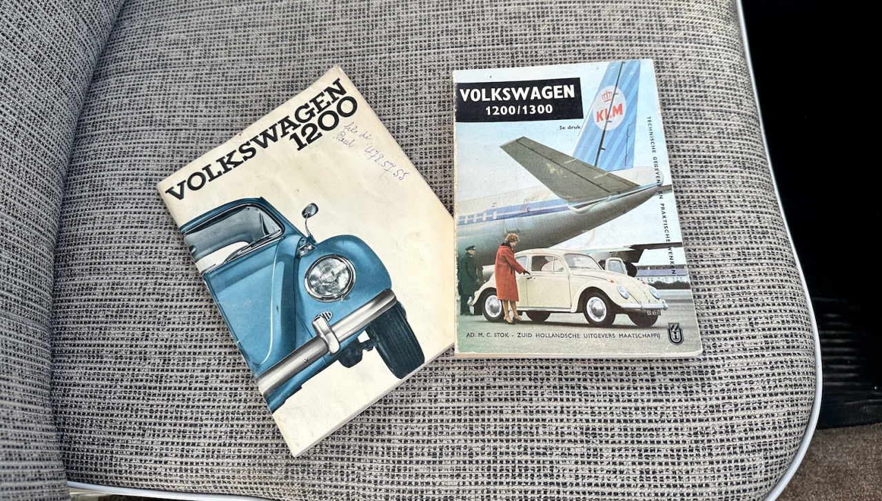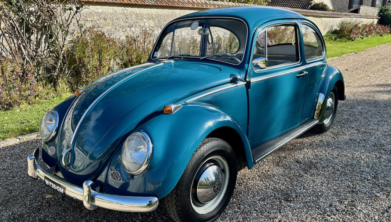 Elle est encore avec son immatriculation Belge, elle a été commandée neuve à la concession VW d’Ieteren à Bruxelles le 26 Mars 1965 , nous disposons de la facture d’achat, de la carte grise d’origine.