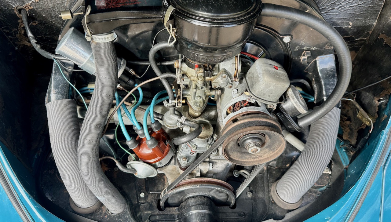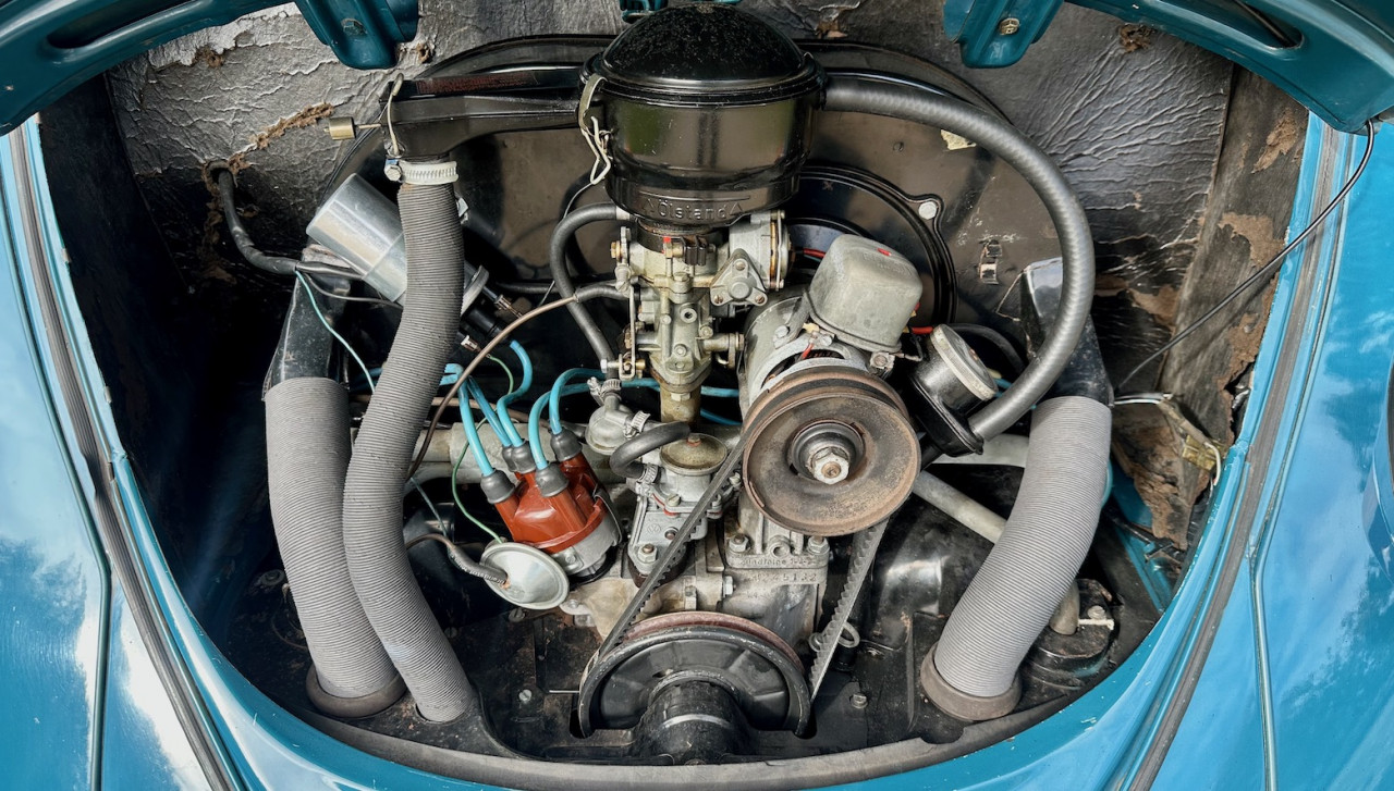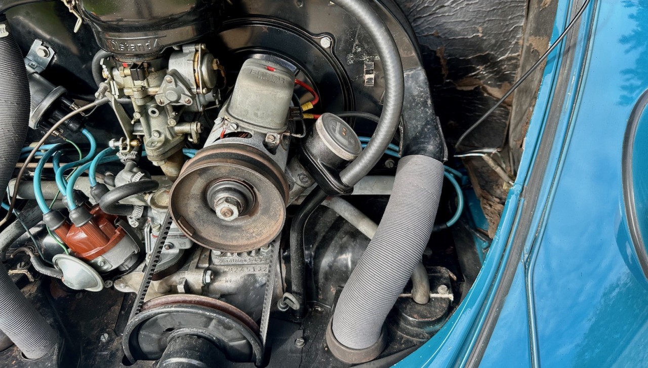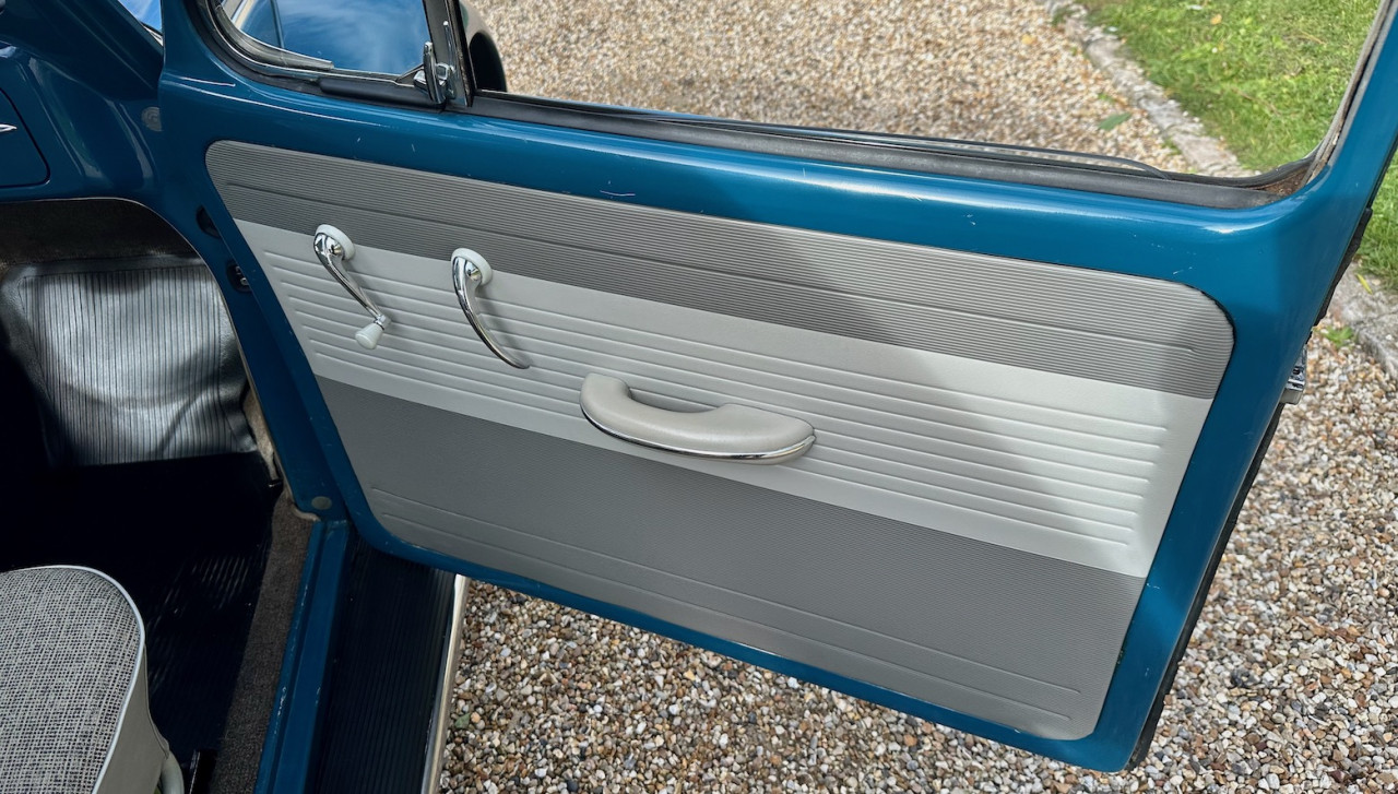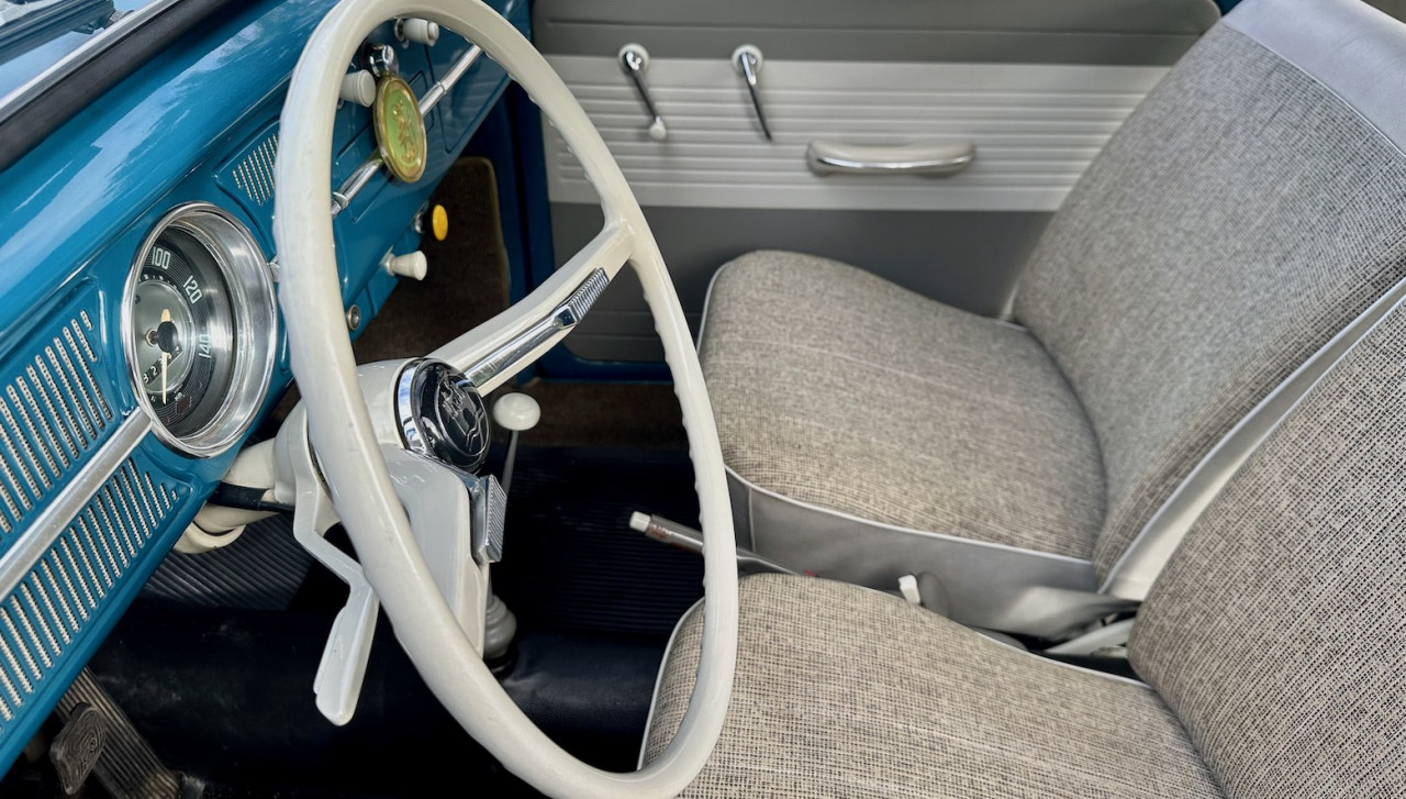 Elle est encore avec son immatriculation Belge, elle a été commandée neuve à la concession VW d’Ieteren à Bruxelles le 26 Mars 1965 , nous disposons de la facture d’achat, de la carte grise d’origine.
