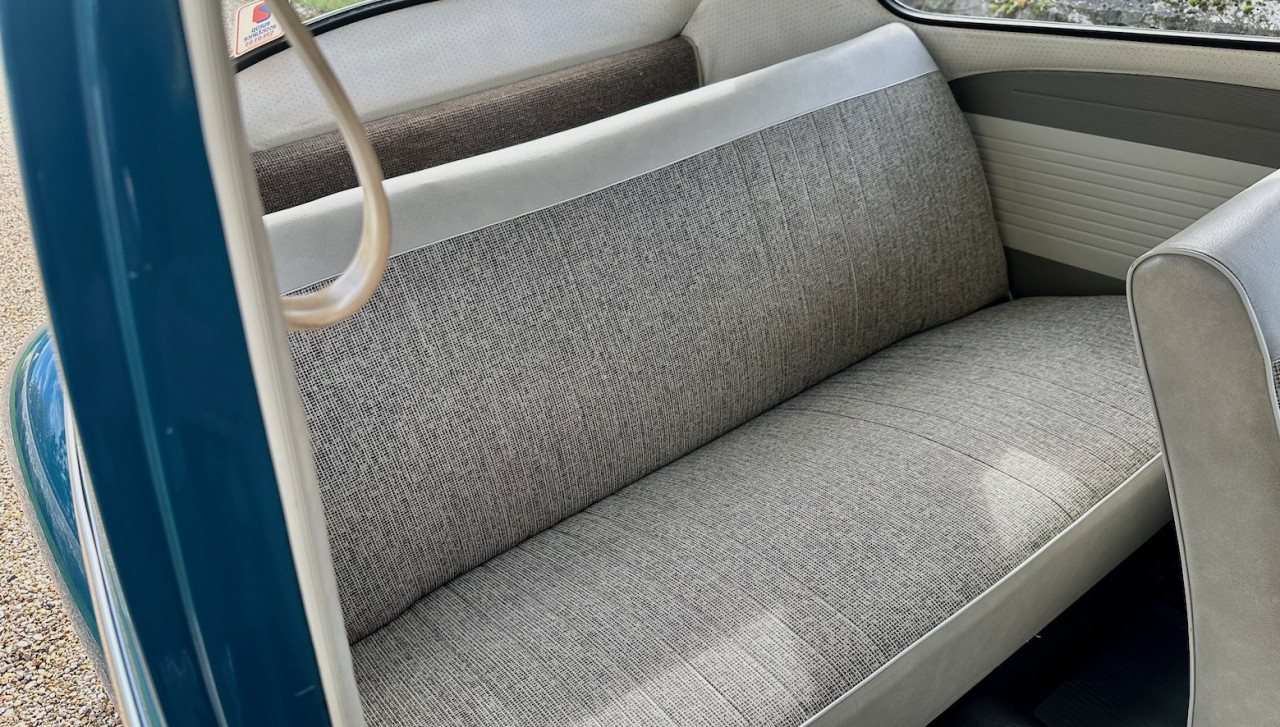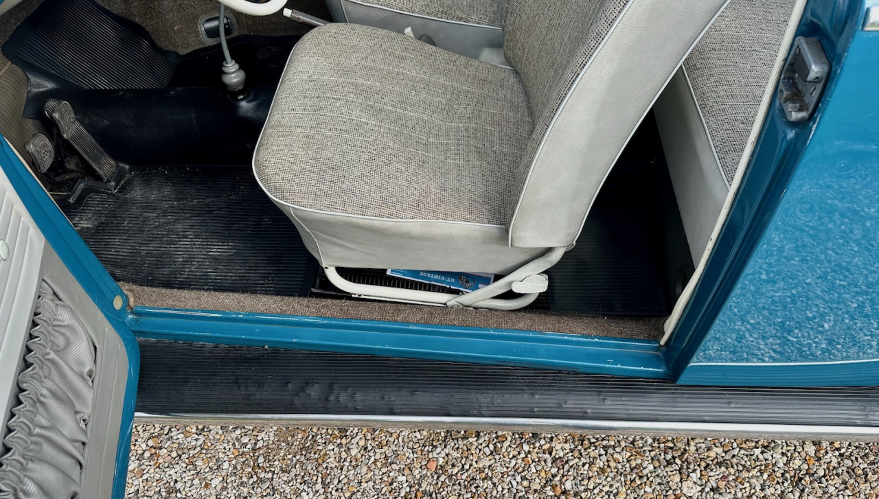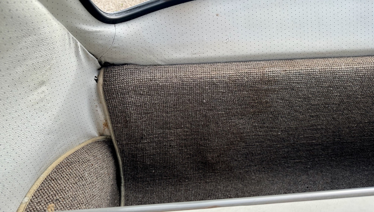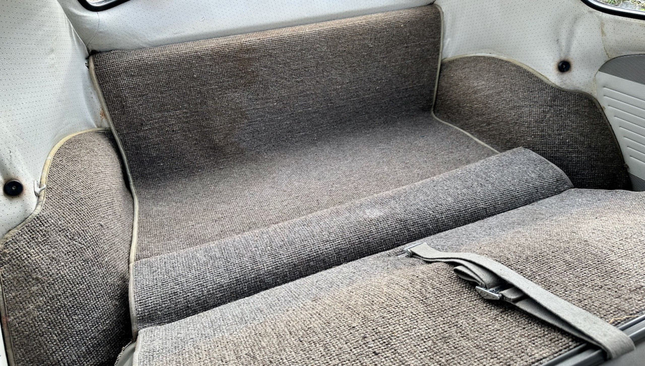 La sellerie est d’origine et superbe, pas de sièges déchirés, ni de panneaux de porte déformés ; le ciel de toit est superbe, les entourages de lunette arrière sont bien étanches, pas d’infiltrations d’eau.
