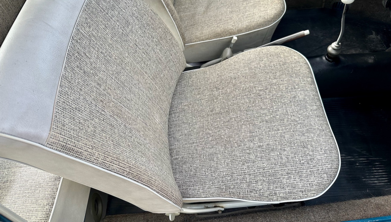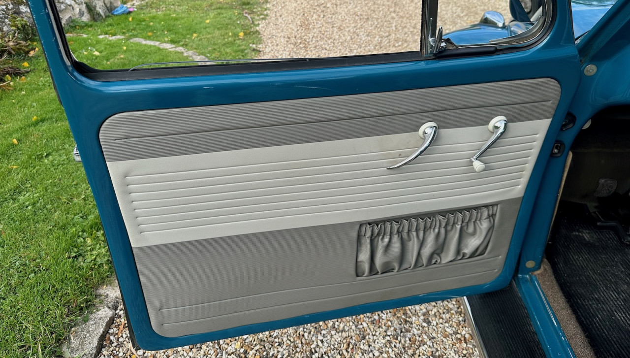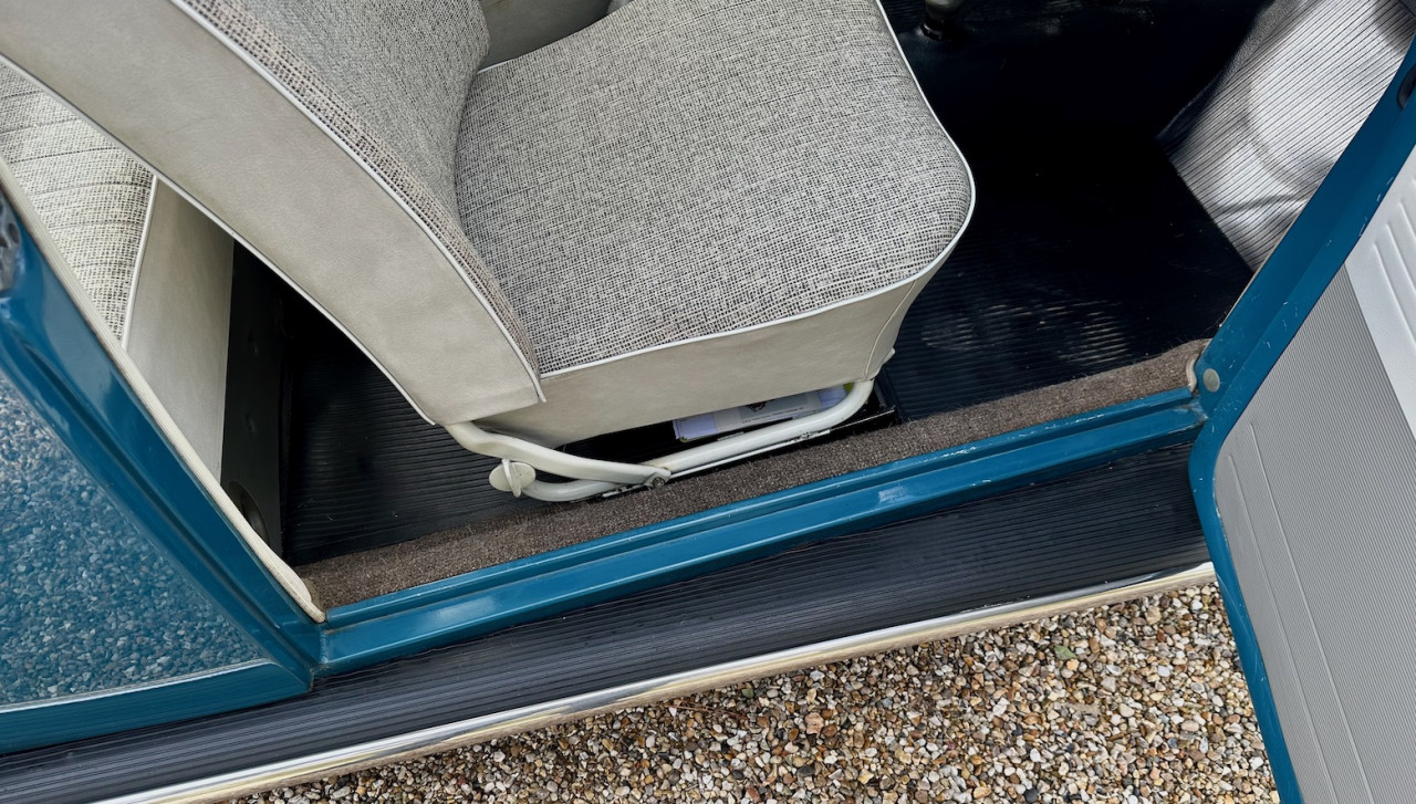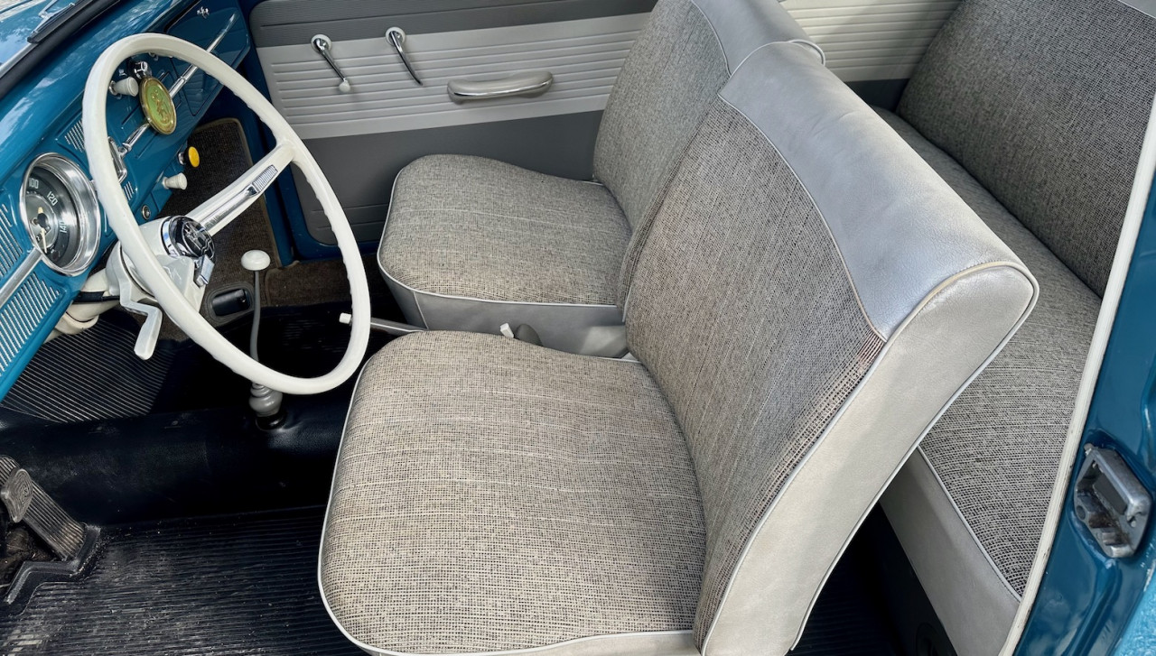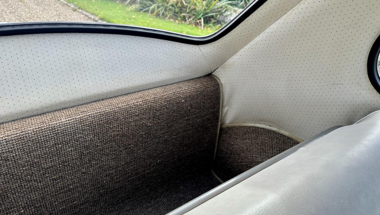 La sellerie est d’origine et superbe, pas de sièges déchirés, ni de panneaux de porte déformés ; le ciel de toit est superbe, les entourages de lunette arrière sont bien étanches, pas d’infiltrations d’eau.