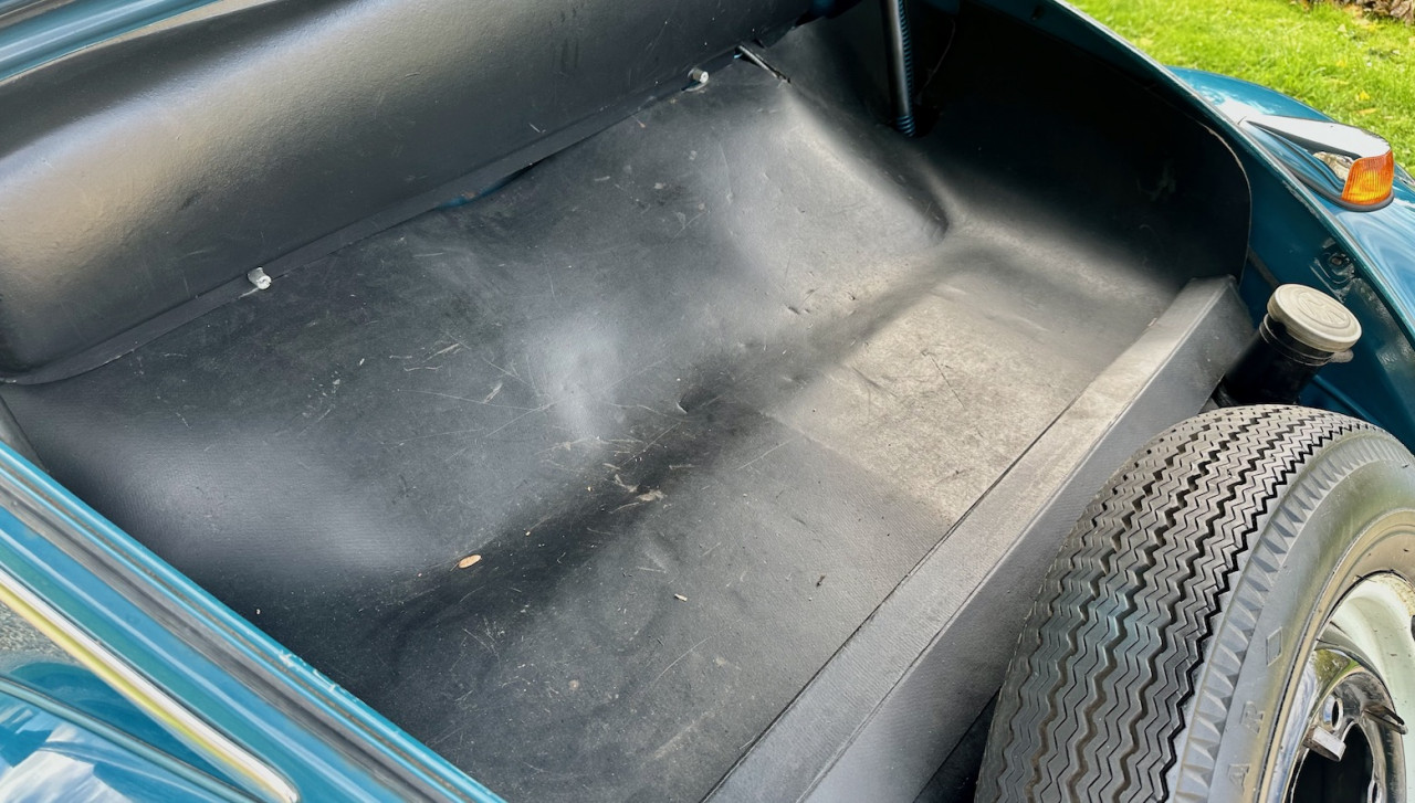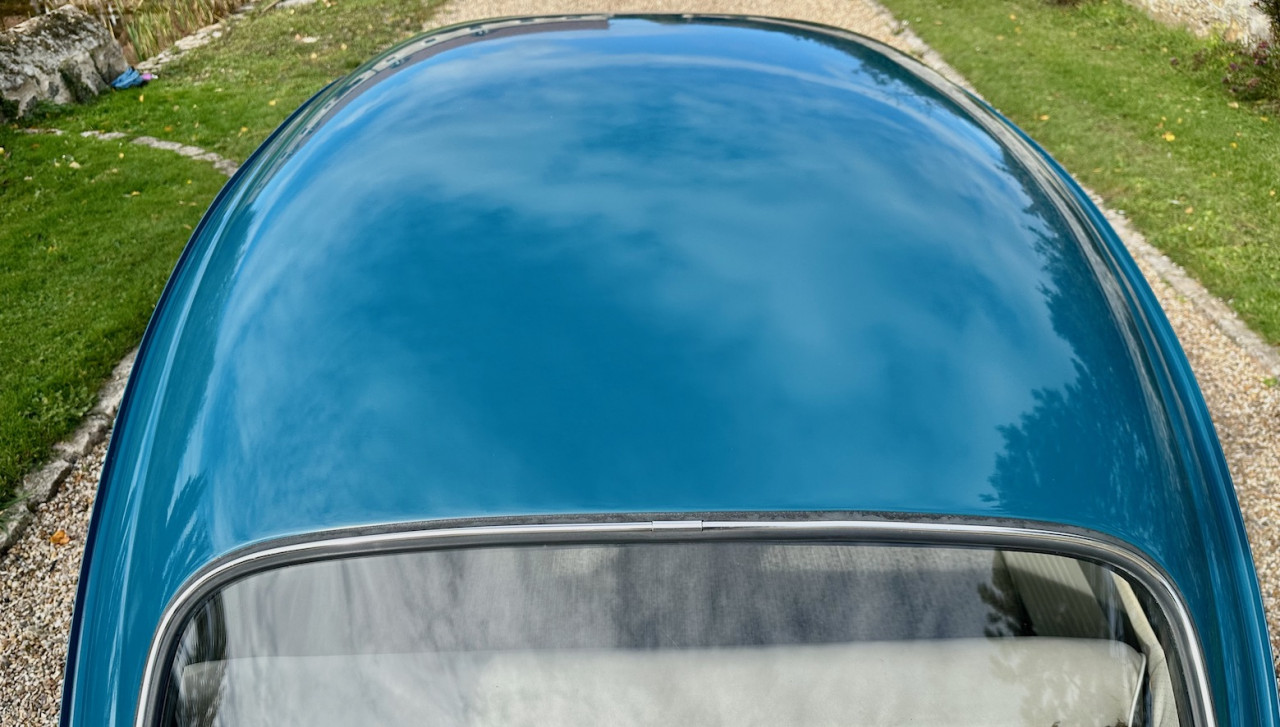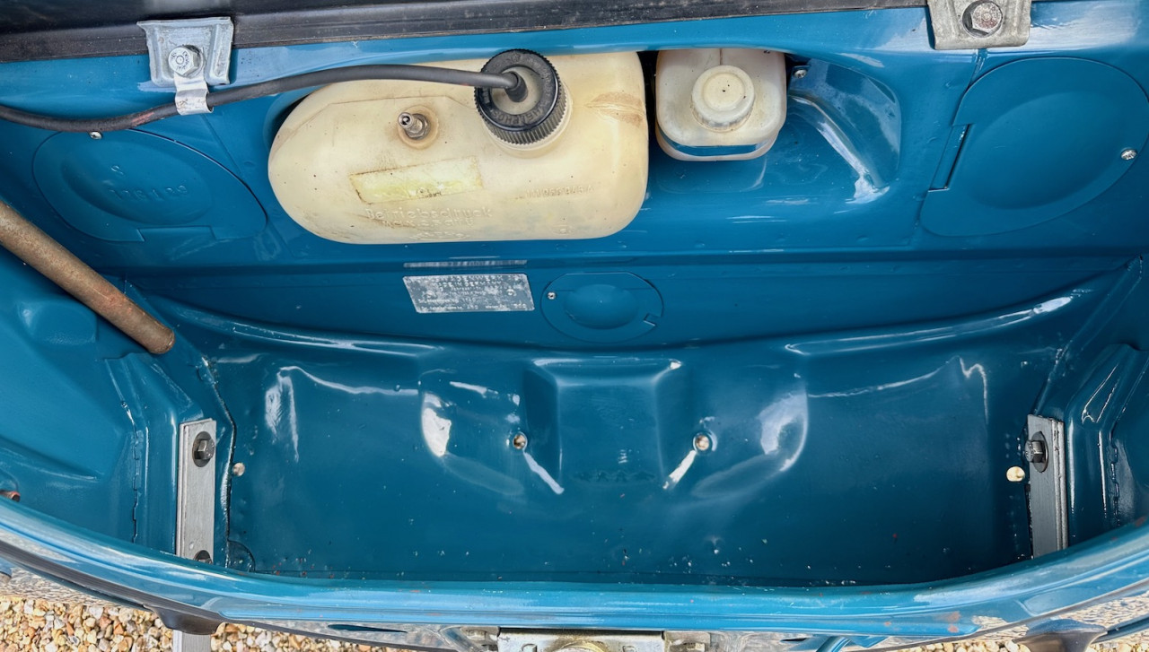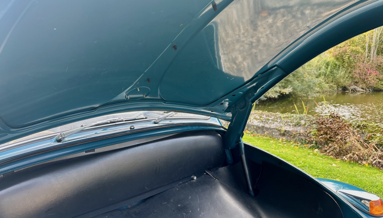 La peinture est celle d’origine, ainsi que tous les chromes. Pas de traces de corrosion sur la carrosserie. Le compartiment du coffre avant est en excellent état, pas de déformations à constater suite à des chocs éventuels.