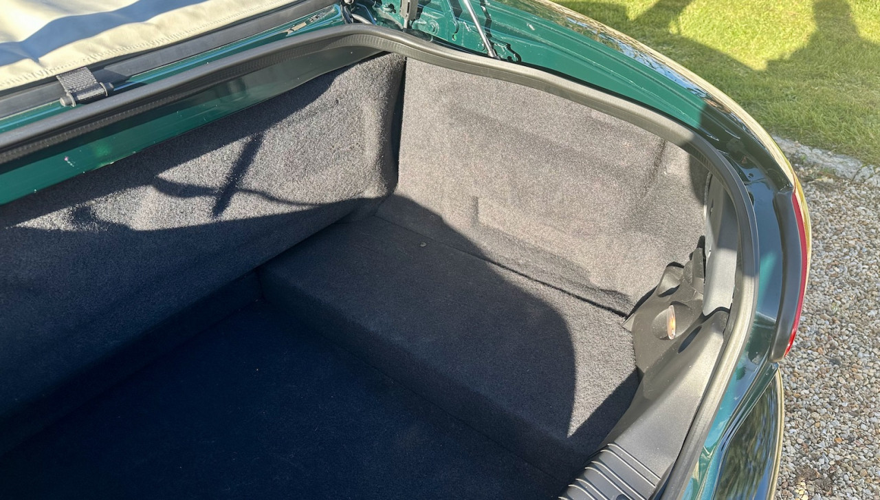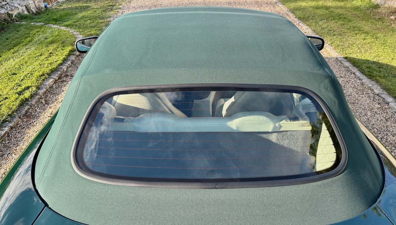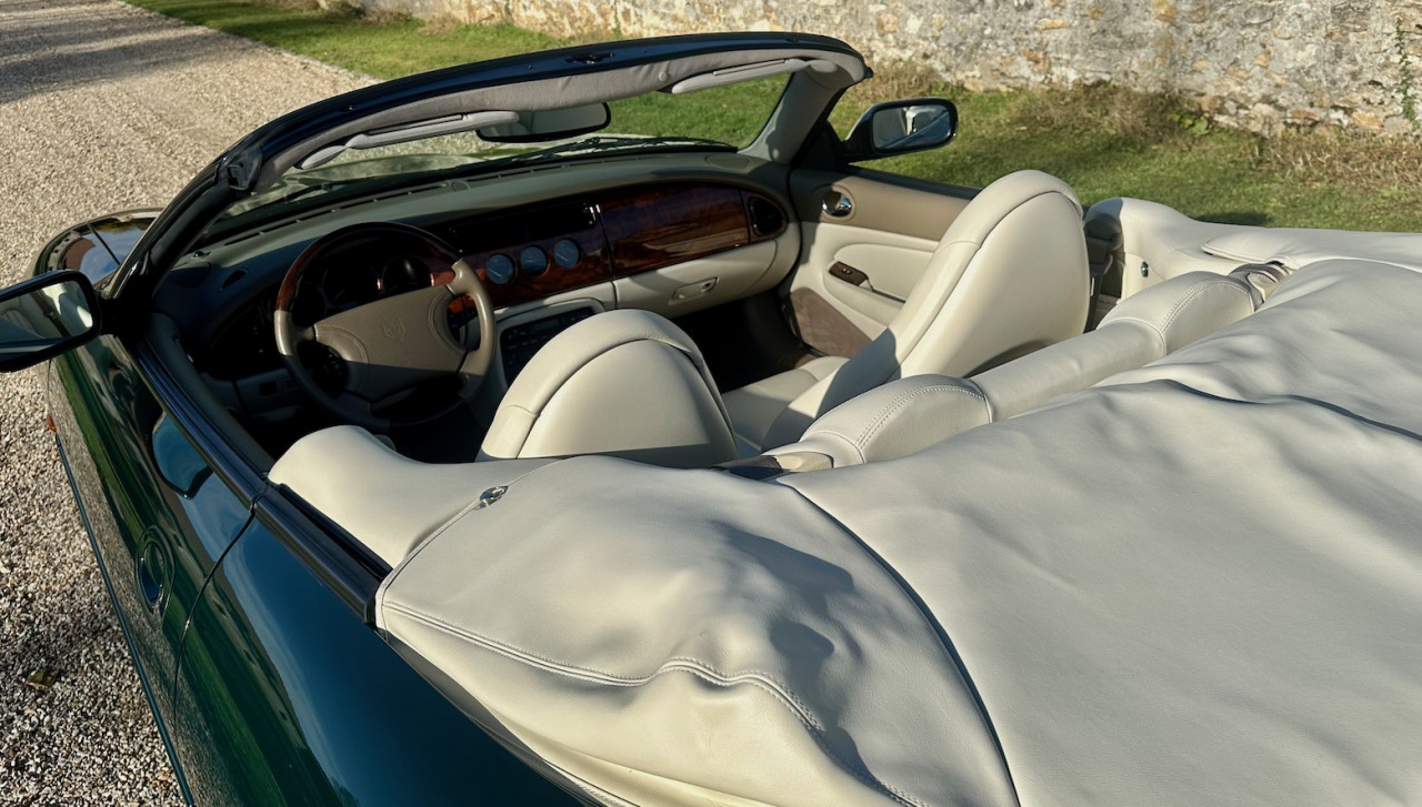 Révisée intégralement, la JAGUAR est comme neuve, superbe dans sa livrée British Green et son intérieur Cuir Ivoire. Tout est comme sorti d’usine, c’est incroyable. La combinaison est grandiose et très élégante, la capote vert foncé vient finaliser le tout, c’est du jamais vu.