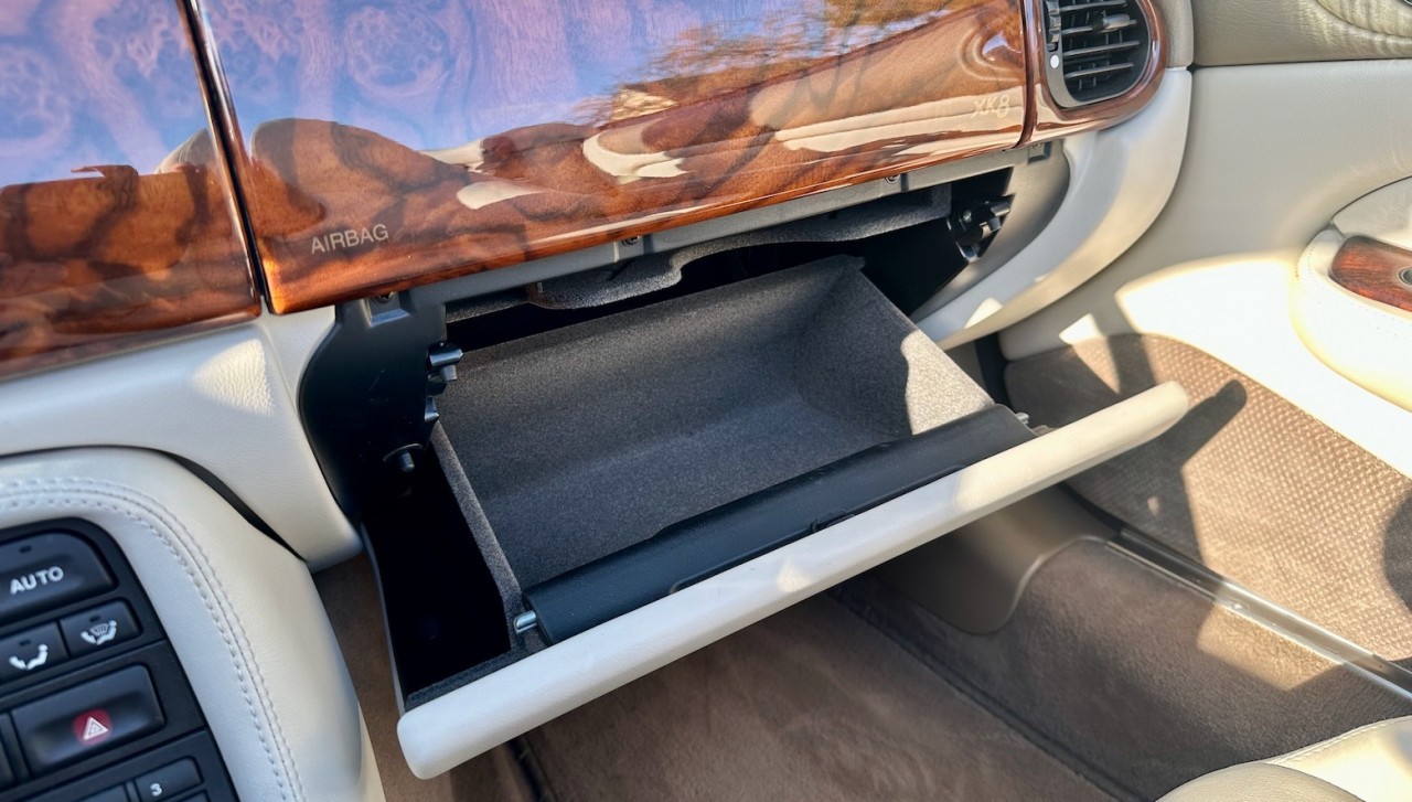 L'intérieur, entièrement gainé de cuir, offrait un niveau d'élégance et de luxe exceptionnel. Jaguar avait orné le tableau de bord, la console centrale et les contre-portes d'inserts en noyer. Face au conducteur, des cadrans encastrés regroupaient les commandes de climatisation et le système audio. La XK8 était proposée avec un lecteur de cassettes et, en option, un système audio à neuf haut-parleurs avec changeur CD dans le coffre. À l'avant, deux sièges baquets confortables, avec soutien lombaire disponible pour le conducteur, occupaient l'espace, tandis qu'à l'arrière, deux passagers pouvaient difficilement prendre place.