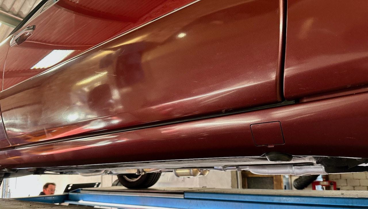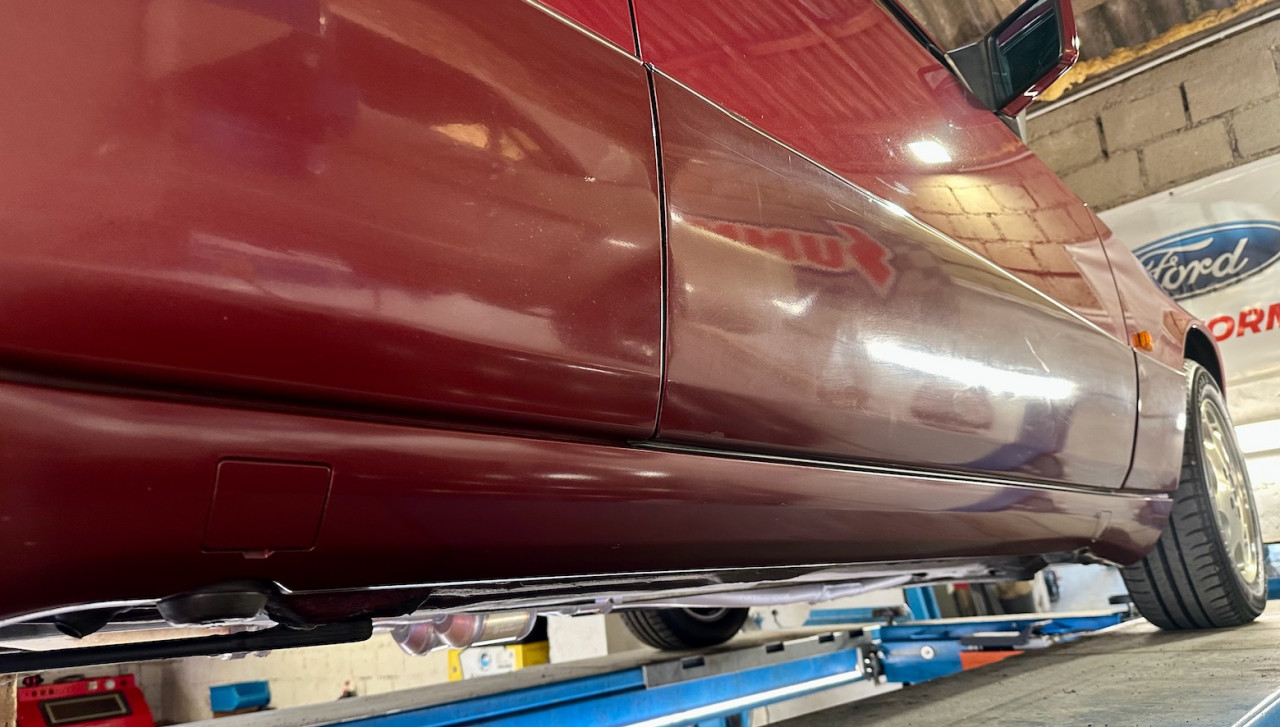 Les jantes en alliage à 8 trous sont en excellent état. La carrosserie est en excellent état avec une peinture d’une couleur magnifique avec les pare chocs peints. Les chromes sont en excellent état.
