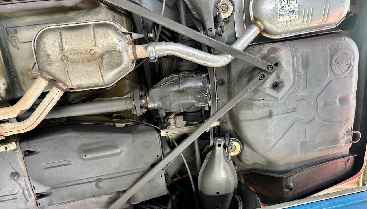Afin de rigidifier la carrosserie et d'offrir au cabriolet un confort et une sécurité comparables à ceux des autres modèles, environ 1 000 composants ont été entièrement repensés. Les éléments structurels ont été fabriqués en acier plus épais ou à haute résistance. Des renforts supplémentaires ont été ajoutés aux zones soumises à de fortes contraintes. Les jambes de force diagonales des sportives R 129 SL ont été reprises, mais avec une grande ingéniosité, des amortisseurs de vibrations ont été utilisés. Ces derniers ont été installés dans la jambe de suspension gauche, le cadre de toit et les évidements latéraux du coffre. Ils ont permis de réduire efficacement les vibrations de la carrosserie, typiques des voitures sans toit.