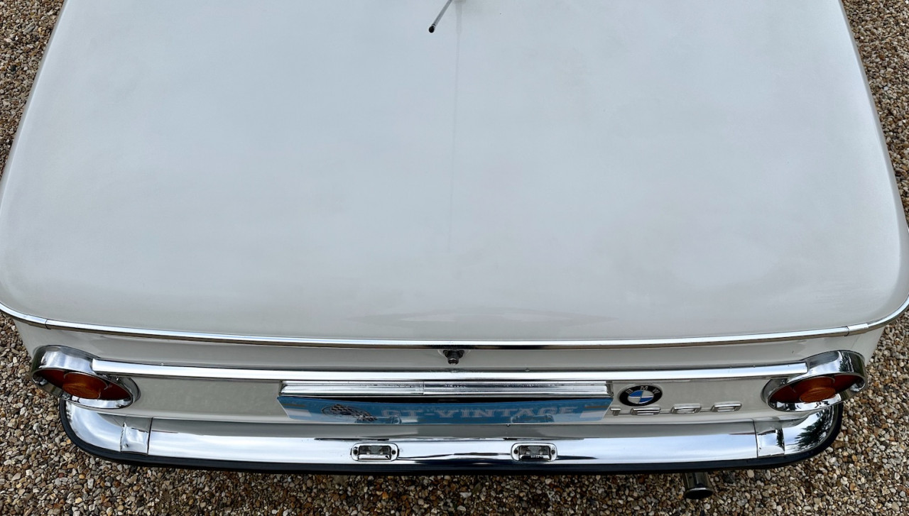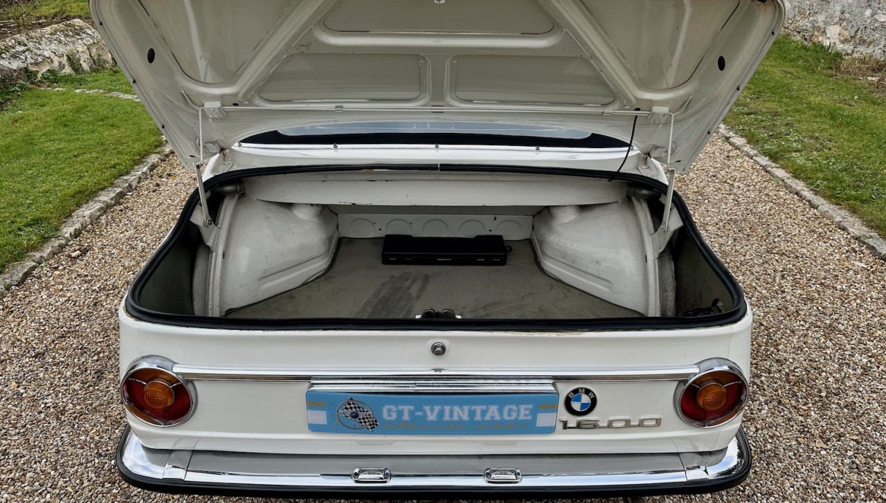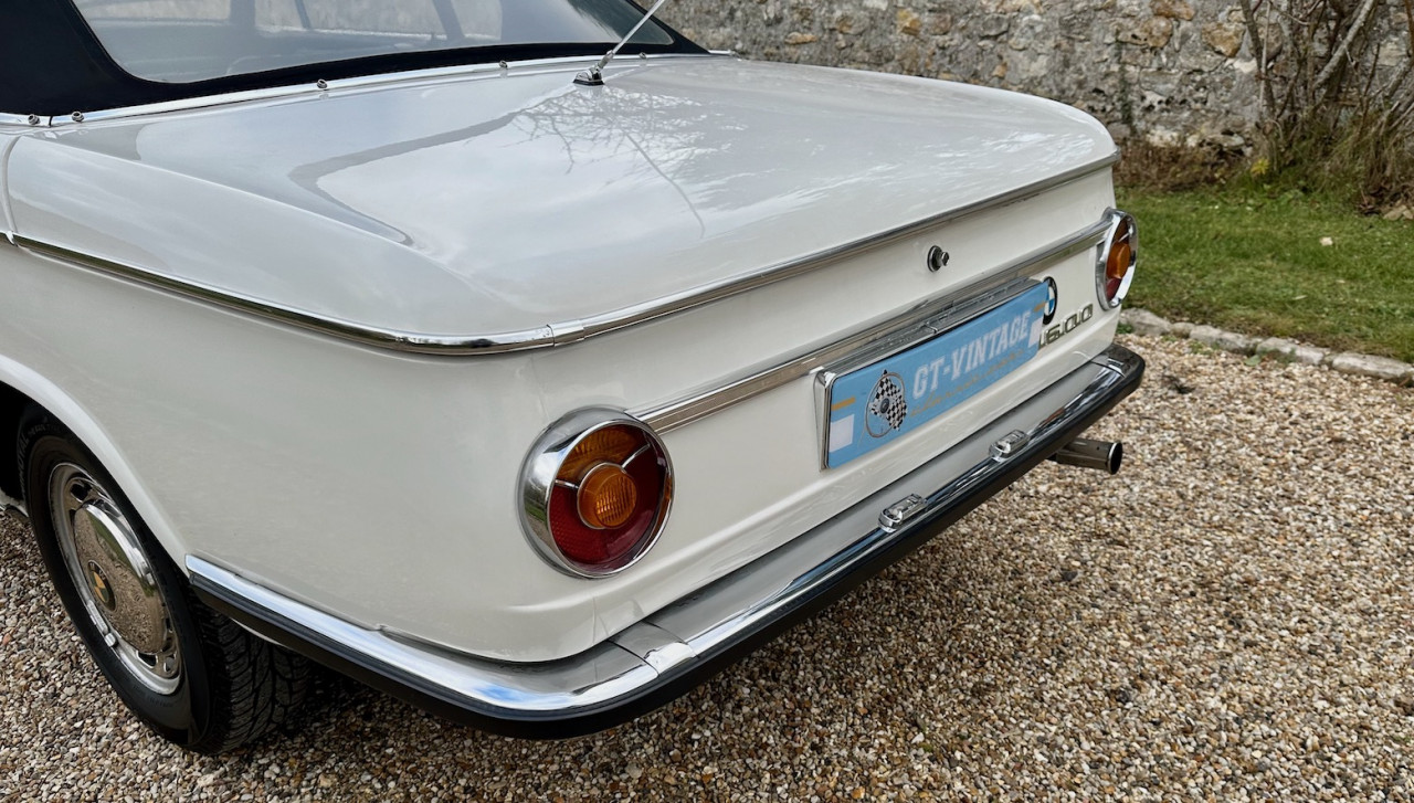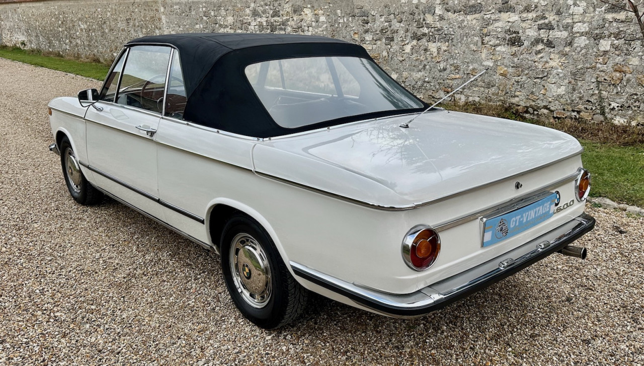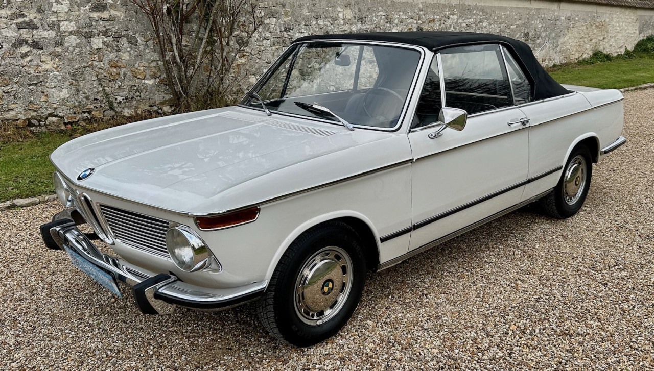 Description : Nous vous proposons à la vente un rare exemplaire de BMW 1600 cabriolet qui est sortie de fabrication le 17/10/1969 en Allemagne dans les usines BAUR et sera commercialisée en France en septembre 1970, il est en carte grise française de collection, sous le numéro de série 1558058, dans sa livrée d’origine blanc Chamonix, intérieur noir.