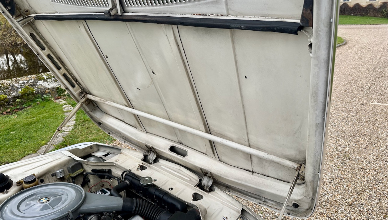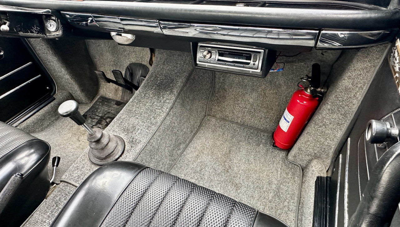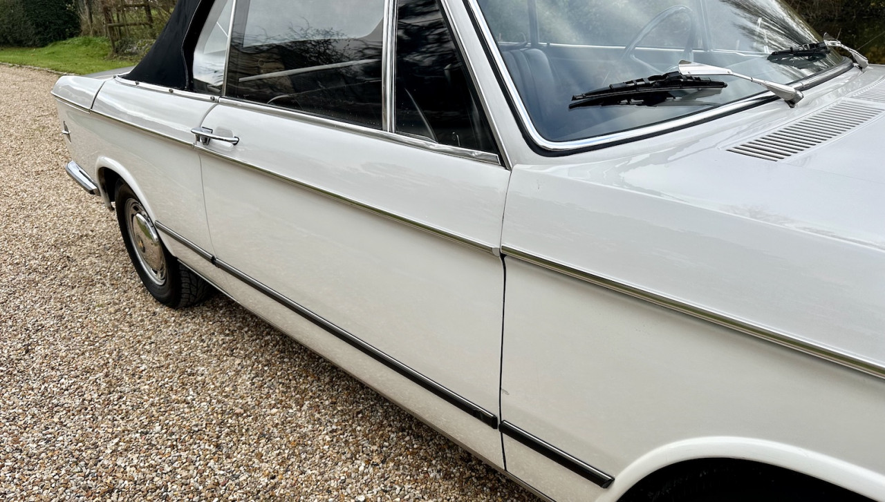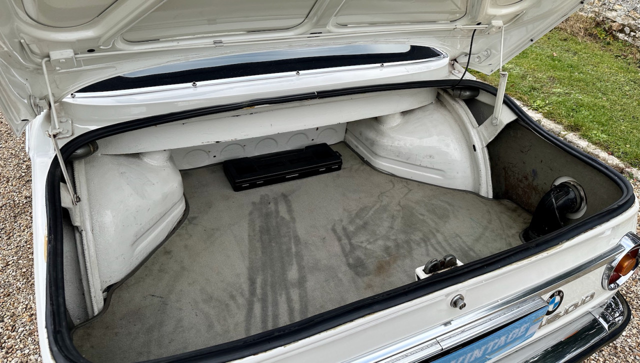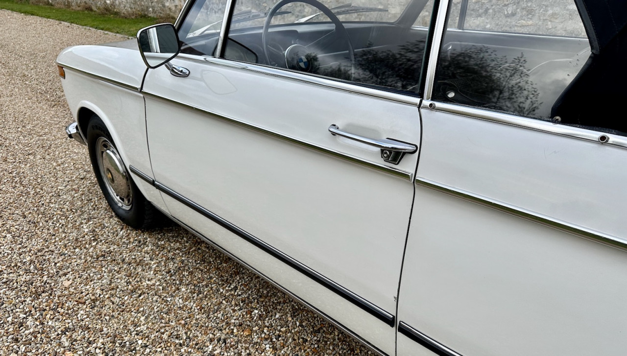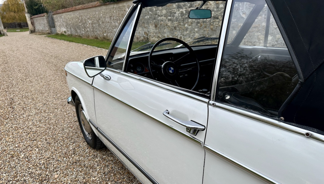 L’intérieur est en parfait état, pas de déchirures sur les sièges, qui sont confortables, le tableau de bord est conforme à l’origine, sans craquements et très vintage. La moquette est propre, les panneaux de porte complet. L'intérieur témoigne de la transition entre les années 1960 et 1970 : la sellerie est très propre. Ce cabriolet offre quatre places spacieuses, un confort digne de la marque bavaroise. Devant le grand volant en bakélite se trouvent trois compteurs ronds au style minimaliste, qui vont à l'essentiel avec une touche sportive. La console centrale se termine au niveau du tunnel de transmission, où se trouvent l'autoradio non d’origine et la boîte de vitesses manuelle à quatre rapports.