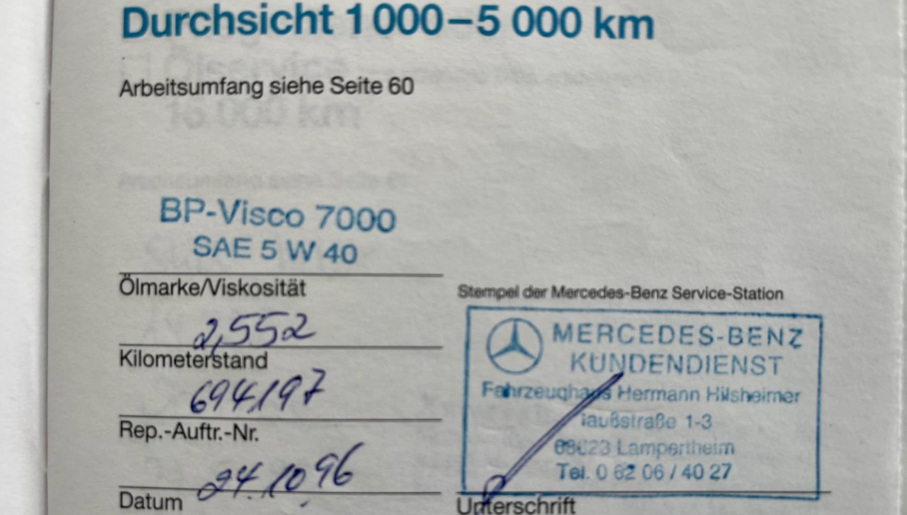 24/10/1996 – entretien MERCEDES KUNDENDIENST (D) – 2 552 km