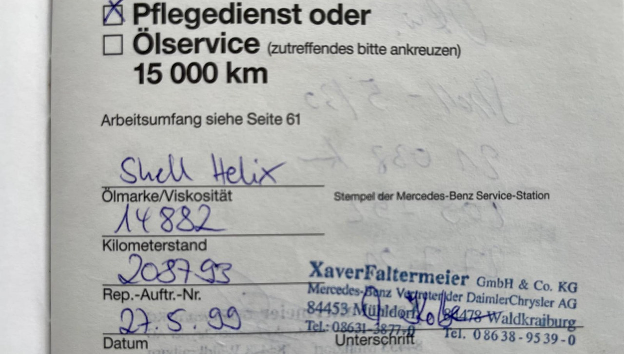 27/05/1999 – entretien Agent MERCEDES XAVERFALTERMEIER (D) – 14 882 km