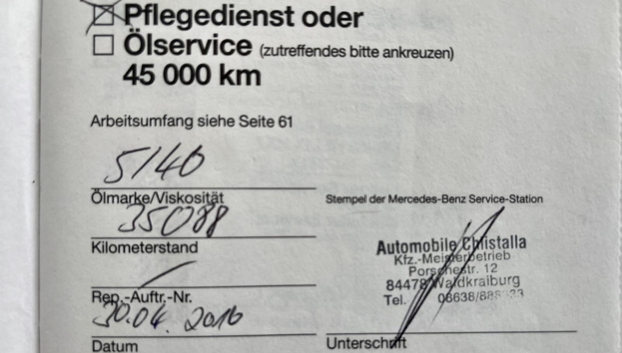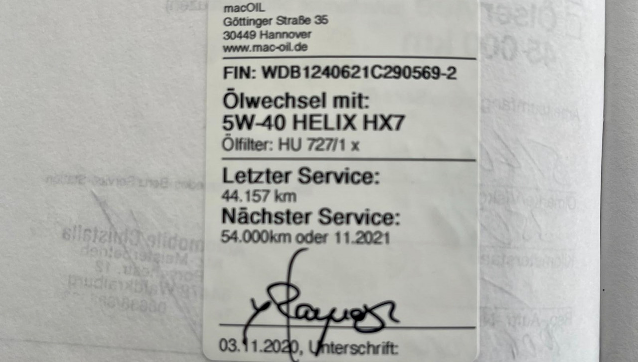 03/11/2020 – entretien MERCEDES HANOVRE (D) – 44 157 km