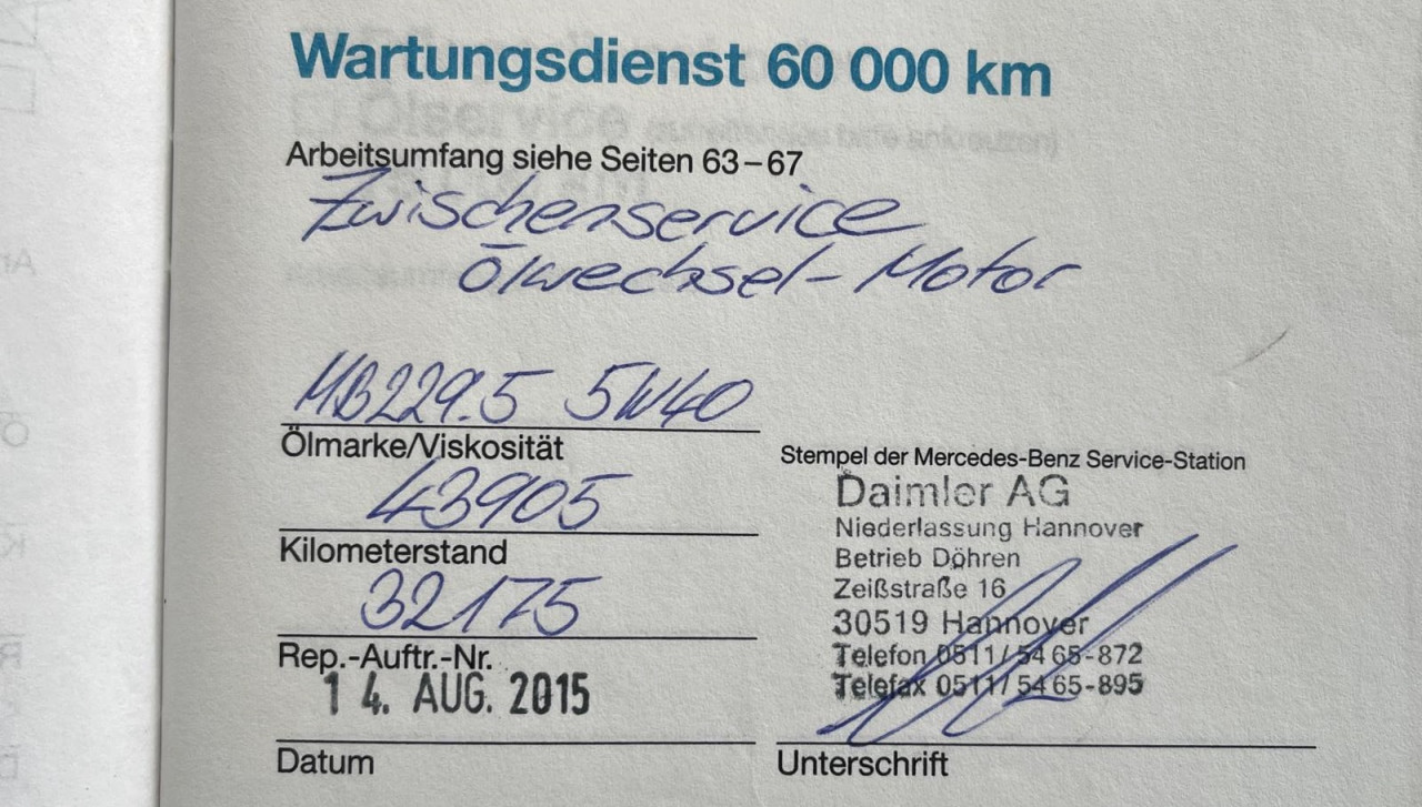 14/04/2015 – entretien MERCEDES HANOVRE (D) – 43 905 km