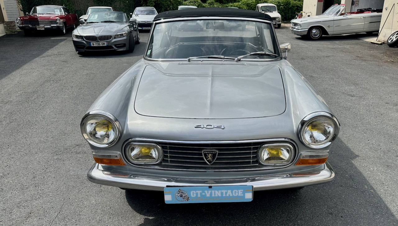 Produite à 10 389 exemplaires entre 1962 et fin 1968, la 404 Cabriolet conserve l'ergonomie intérieure, la robustesse mécanique et l'excellente tenue de route de la berline. Côté design, elle affiche fièrement des influences italiennes. La seconde série, lancée en juin 1966, est particulièrement recherchée. Elle se distingue par une calandre redessinée avec deux phares à iode longue portée, des clignotants avant agrandis, un bas de caisse avant modifié et un tableau de bord à trois cadrans. Ce modèle est également doté d'une nouvelle capote avec une lunette arrière plus large et d'une barre antiroulis arrière. La version la plus prisée est celle équipée du système d'injection d'origine.