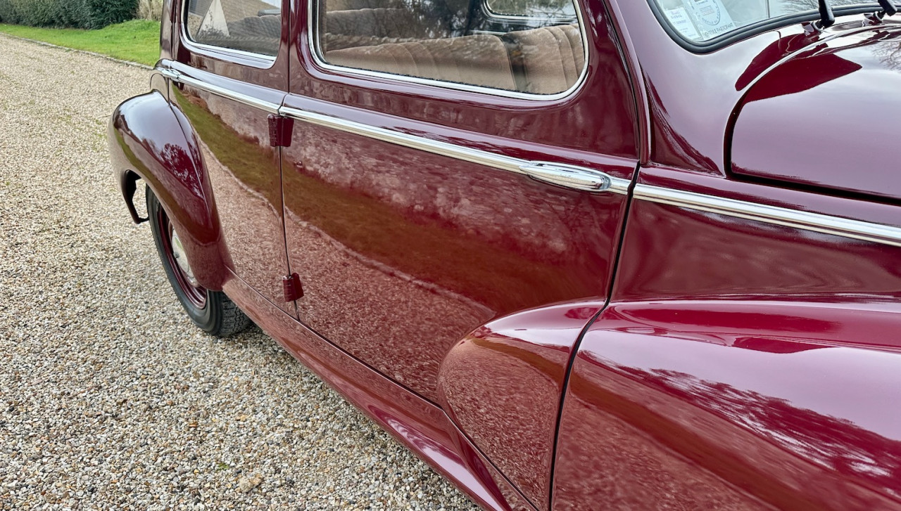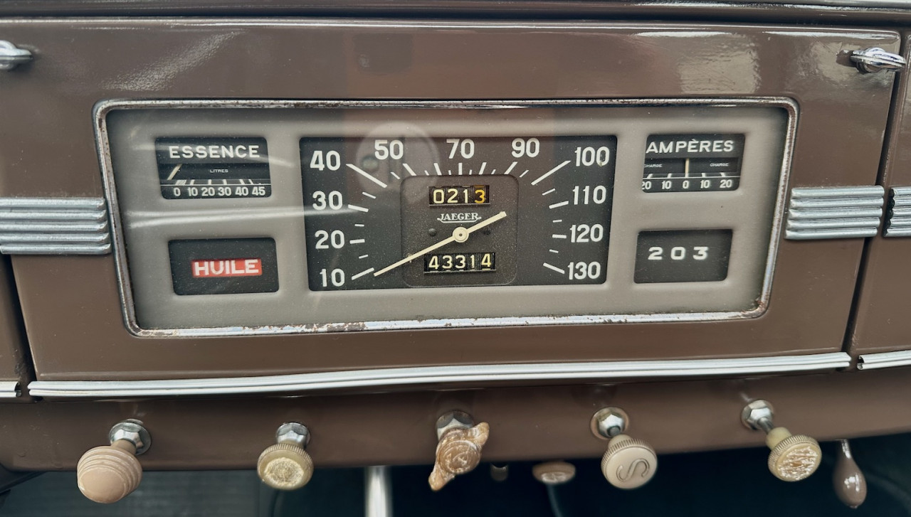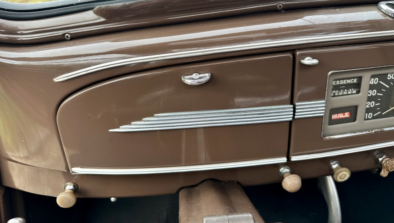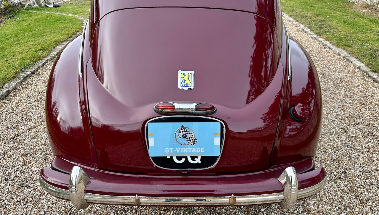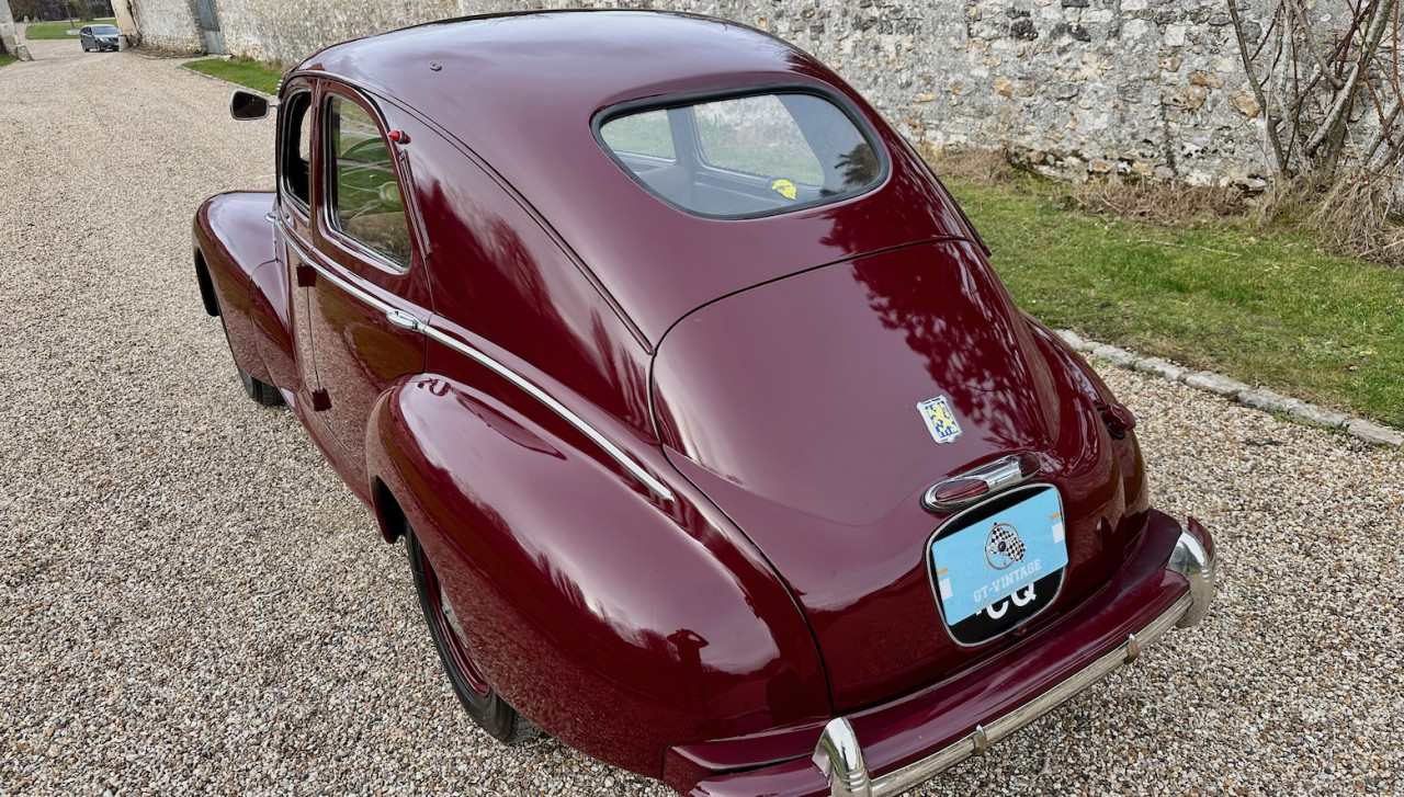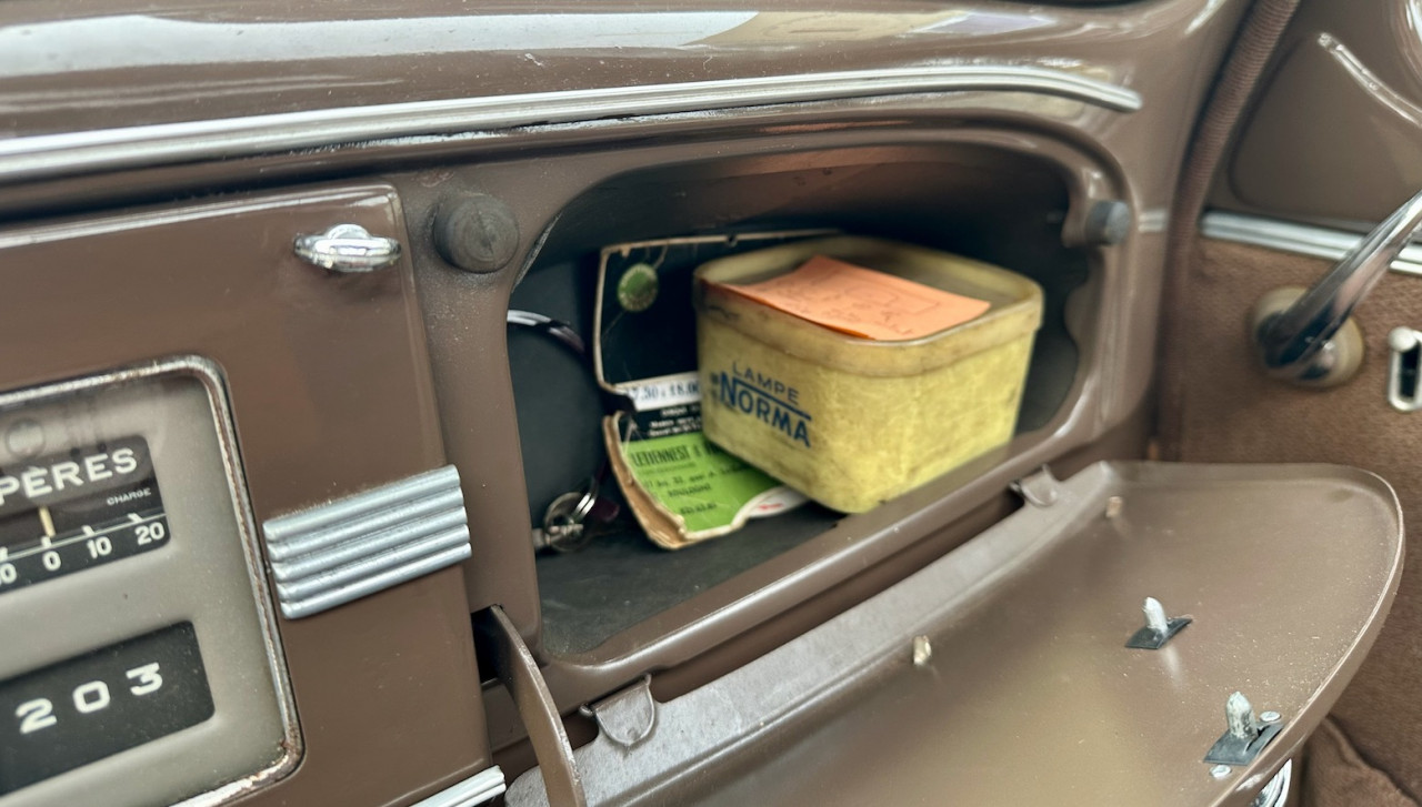 La succession des contrôles techniques donne une idée de son utilisation et l'évolution de son kilométrage qui est bien celui d'origine. Elle comporte toutes ses caractéristiques de sortie d'usine (attestation Peugeot qui la date du 26 décembre 1950) avec ses phares plus proéminents, ses pare-chocs, etc (elle avait reçu des feux arrières sur les ailes dans les années soixante, ils ont été supprimés au moment de sa peinture (les branchements sont encore visibles dans le coffre).