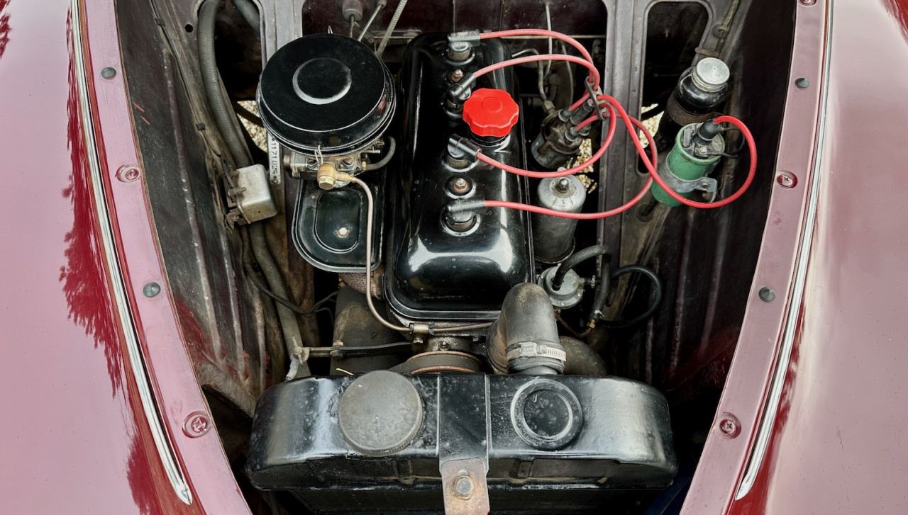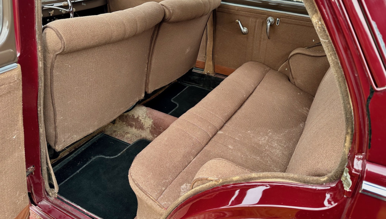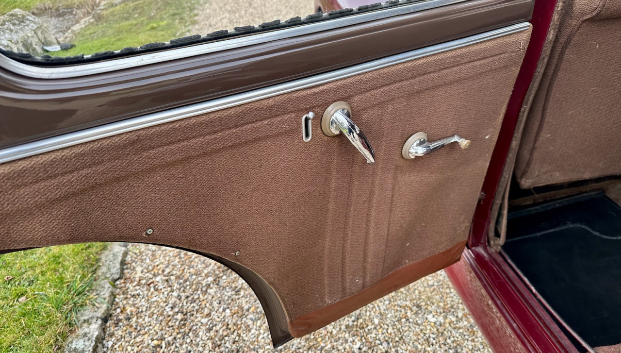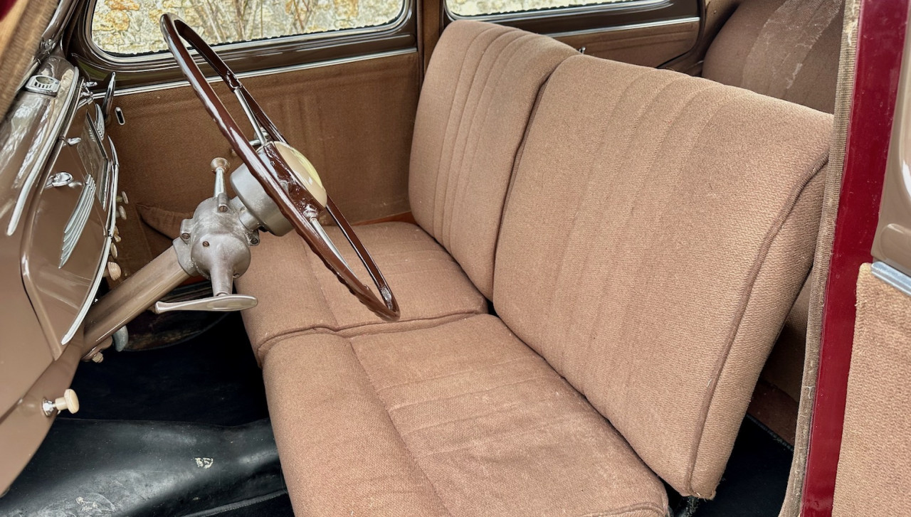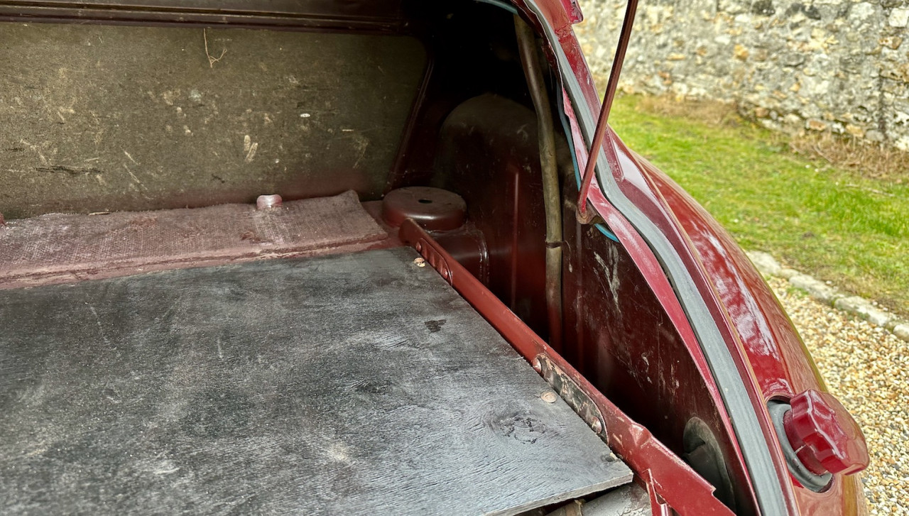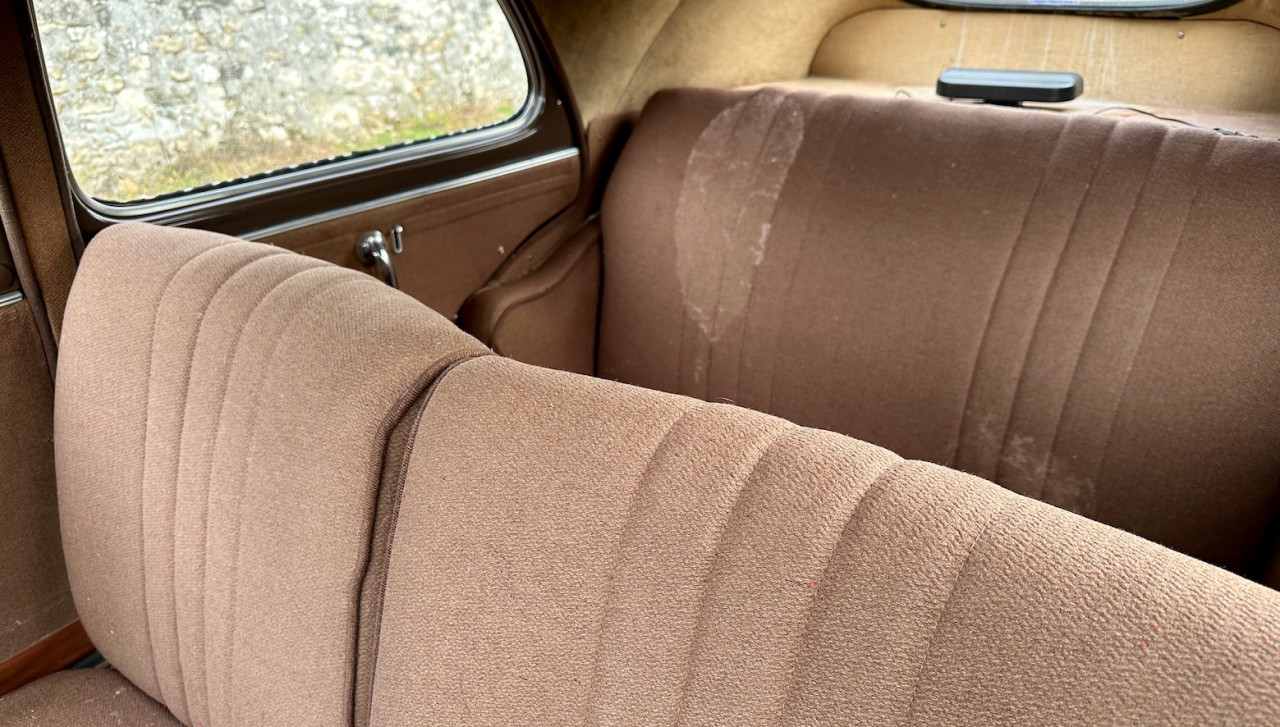 L’intérieur est celui d’origine (sièges, ciel de toit, panneaux de porte). Les sièges étaient recouverts de housse d’époque, le tissu est présentable et sera à l’appréciation du nouvel acquéreur.