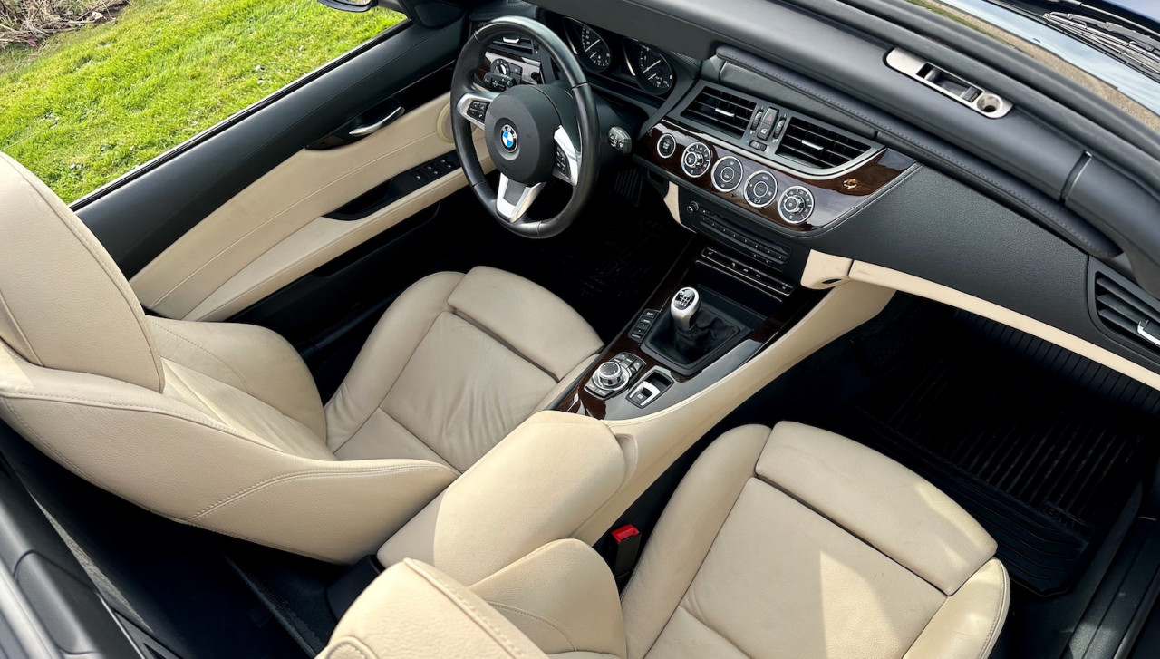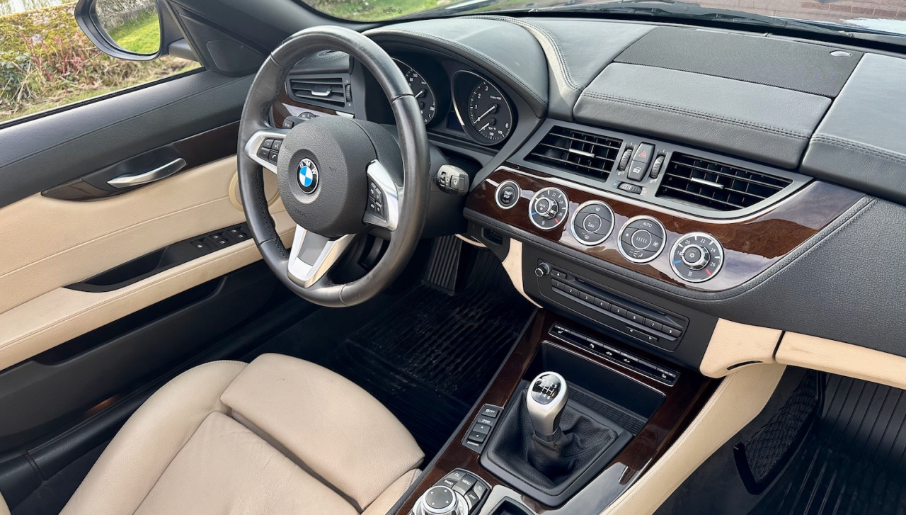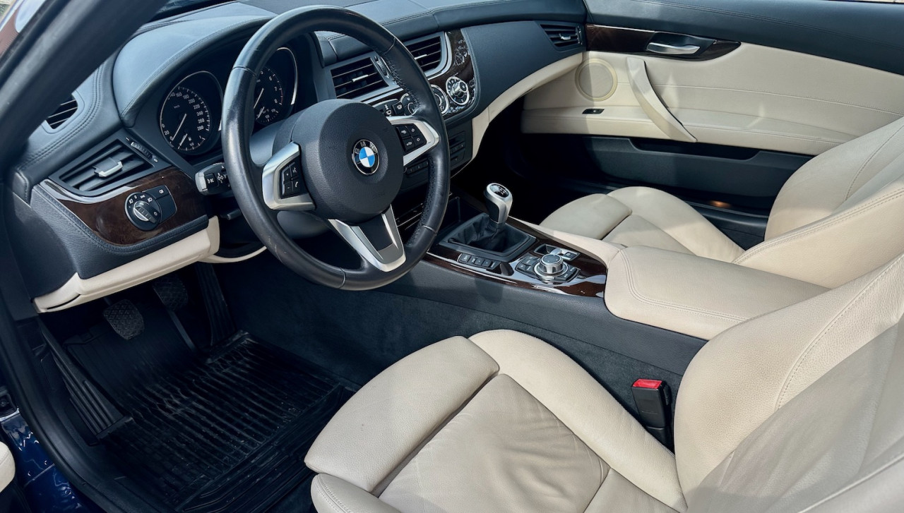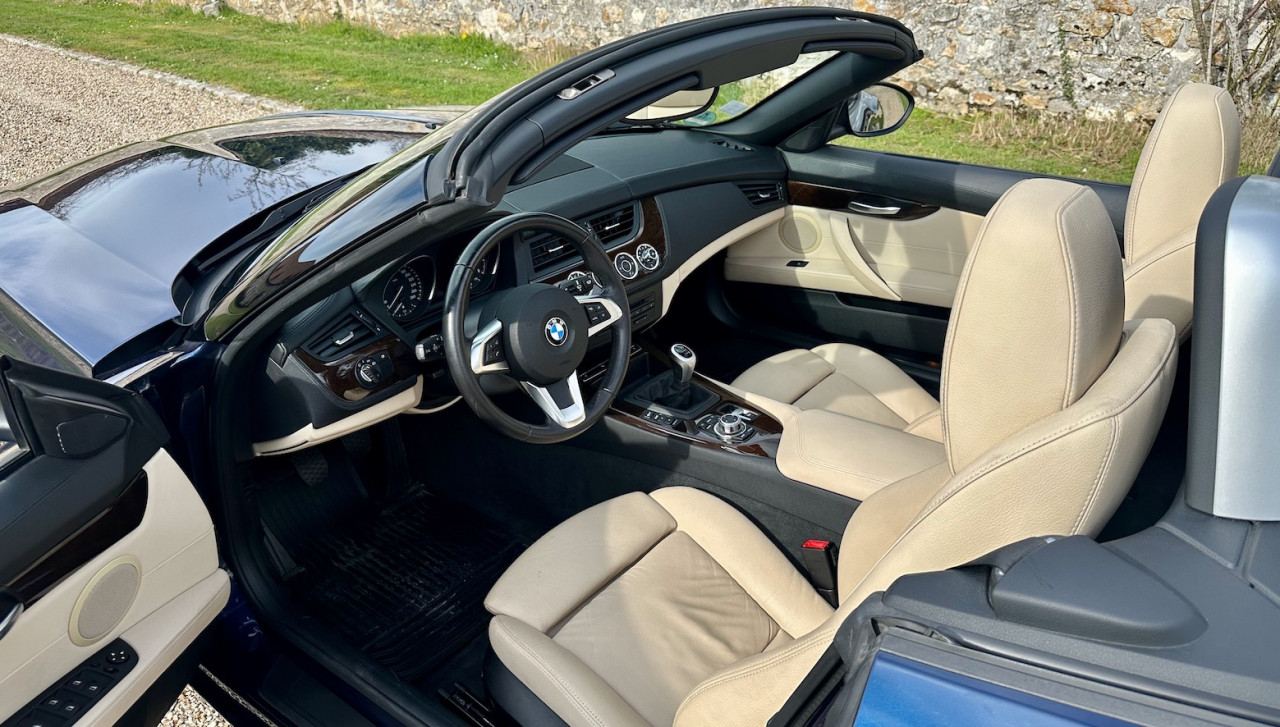 À vendre BMW Z4 S-Drive 23i de 2009 avec une belle configuration bleu foncé dans une finition Luxe avec inserts décoratifs en bois précieux. Équipée d'un moteur 6 cylindres en ligne de 2,5 litres de 204 ch. et d'une boîte de vitesses mécanique à 6 rapports, cette Z4 a été livrée neuve en Allemagne le 15 Mai 2009 et n'a parcouru qu'un total de 38 000 km. Cette BMW Z4 est très intéressante par sa finition et ses équipements.