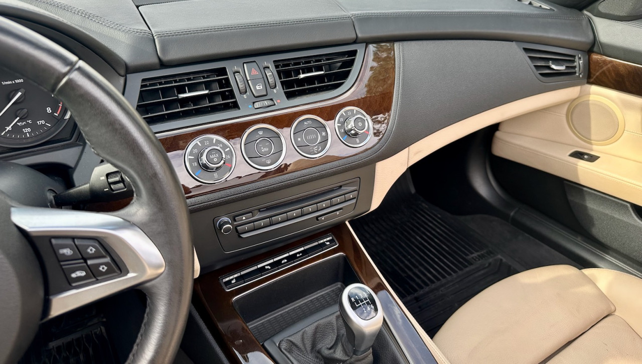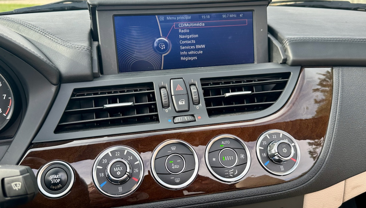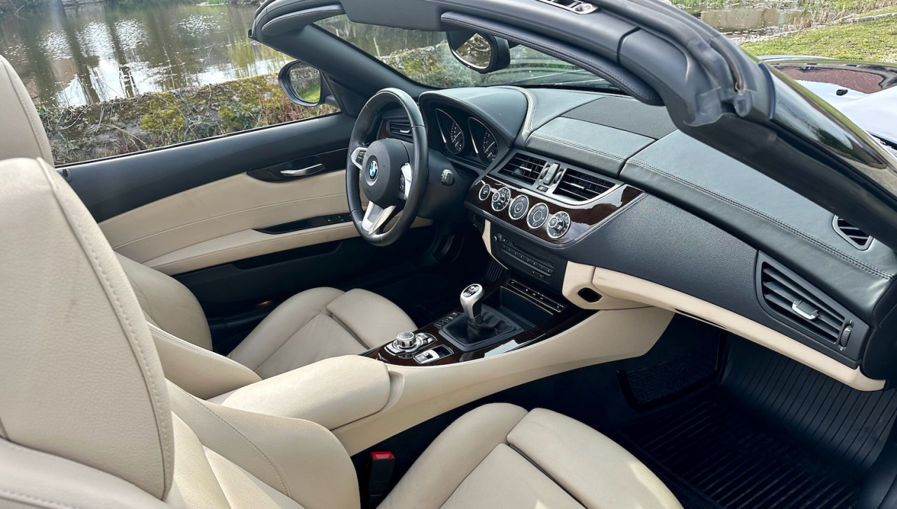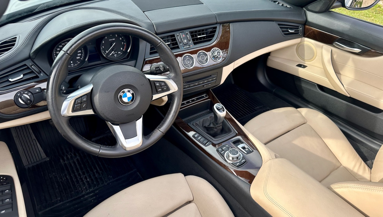 À vendre BMW Z4 S-Drive 23i de 2009 avec une belle configuration bleu foncé dans une finition Luxe avec inserts décoratifs en bois précieux. Équipée d'un moteur 6 cylindres en ligne de 2,5 litres de 204 ch. et d'une boîte de vitesses mécanique à 6 rapports, cette Z4 a été livrée neuve en Allemagne le 15 Mai 2009 et n'a parcouru qu'un total de 38 000 km. Cette BMW Z4 est très intéressante par sa finition et ses équipements.