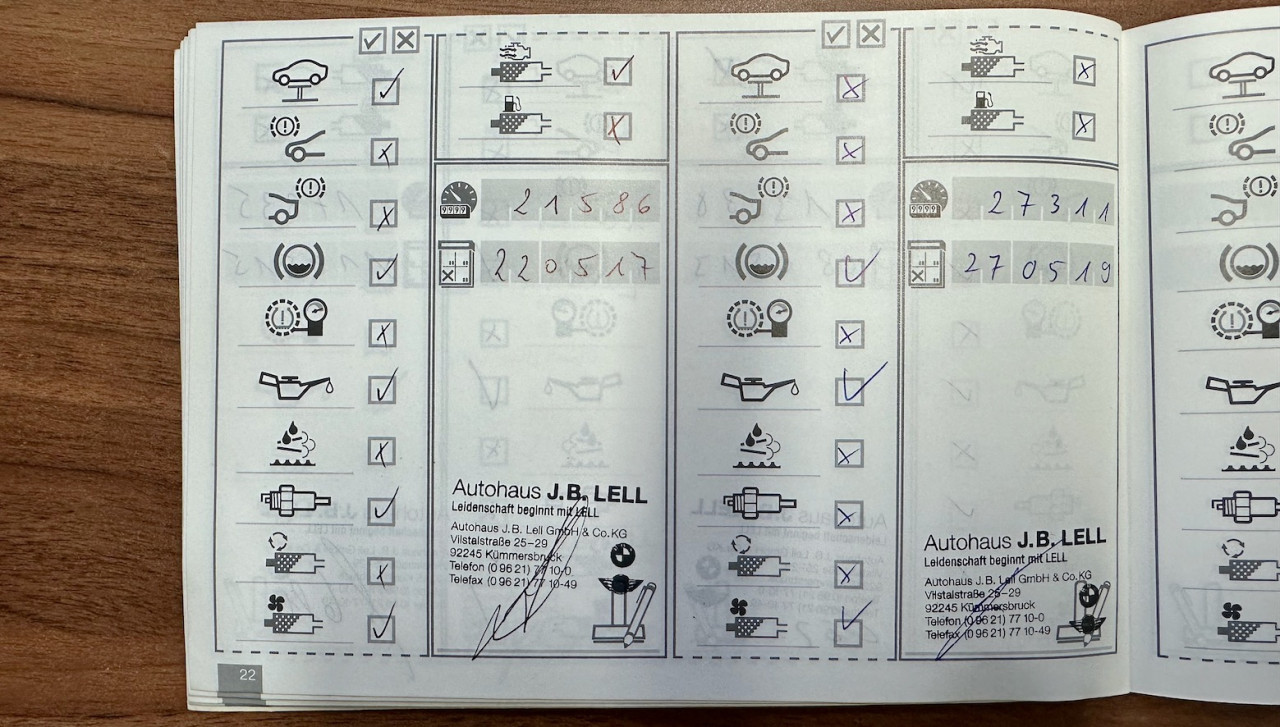 Les instructions d'origine, le livret d'entretien et le manuel en français sont également présents et les services d'entretien suivants sont estampillés dans le livret d'entretien :