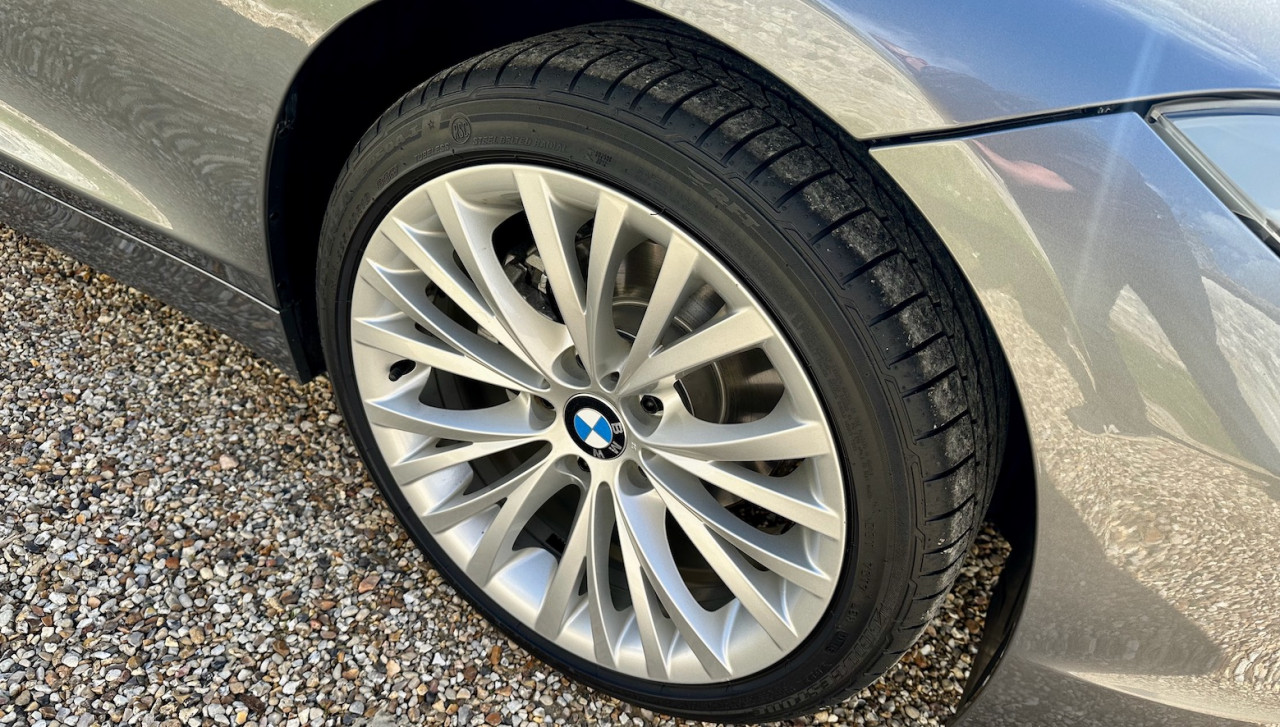 La BMW se présente en très bon état, pas d’accrocs dans les pare chocs ni dans les jantes. La peinture est très belle et témoigne d’une voiture entretenue.