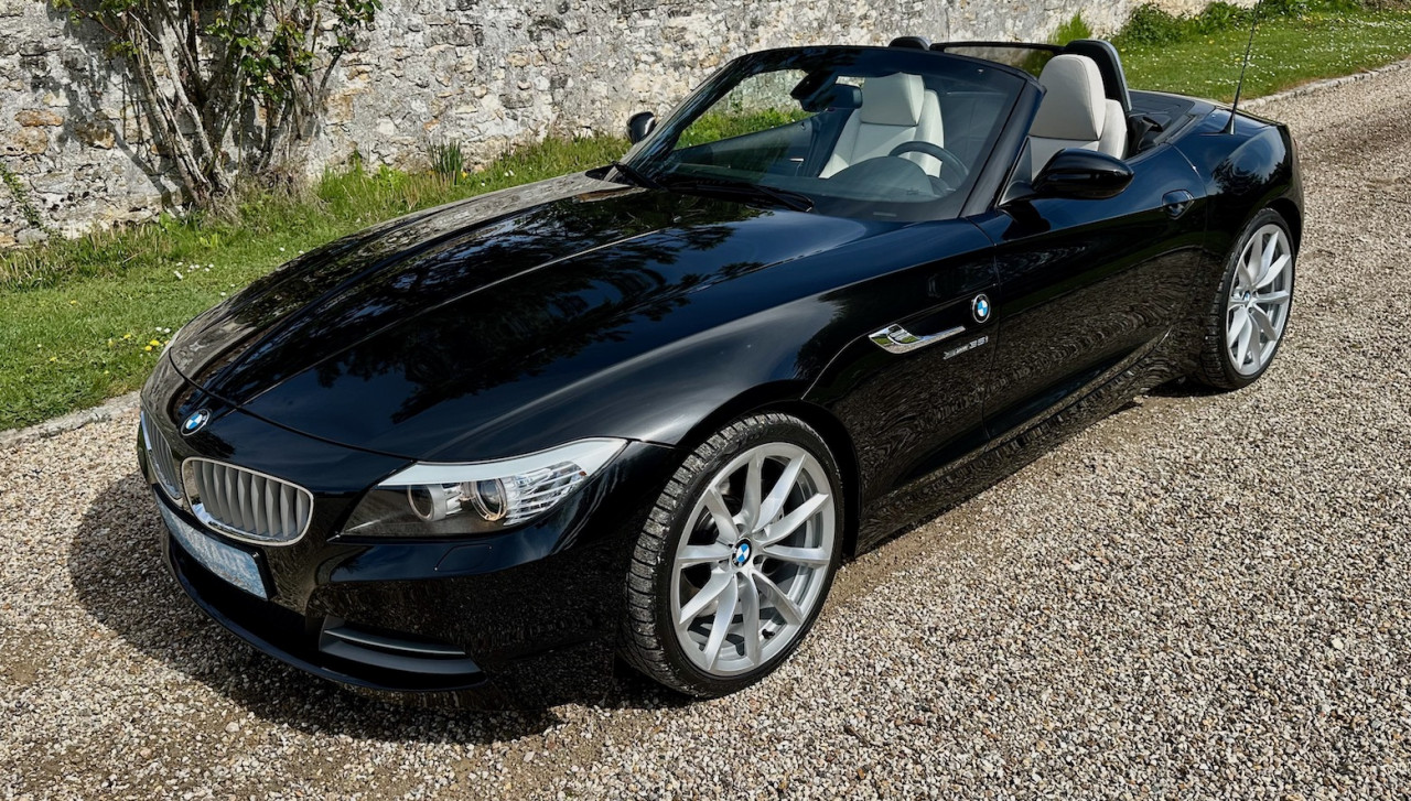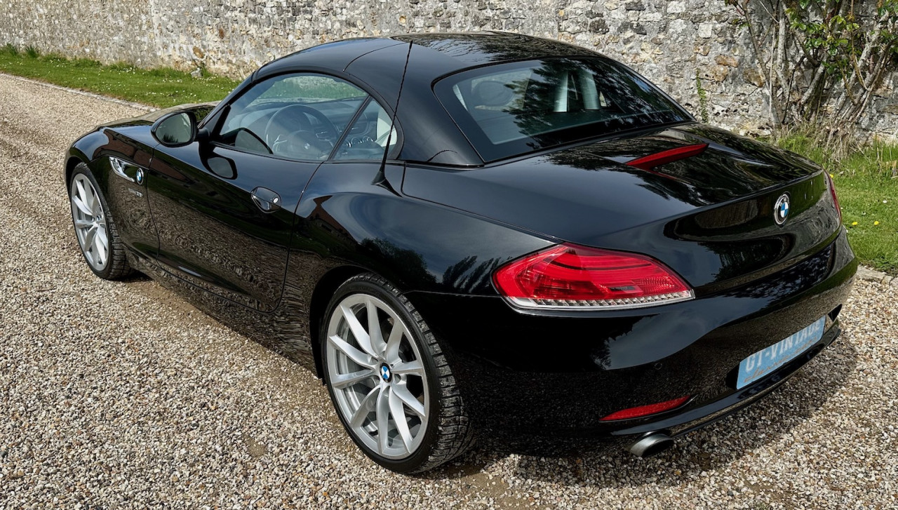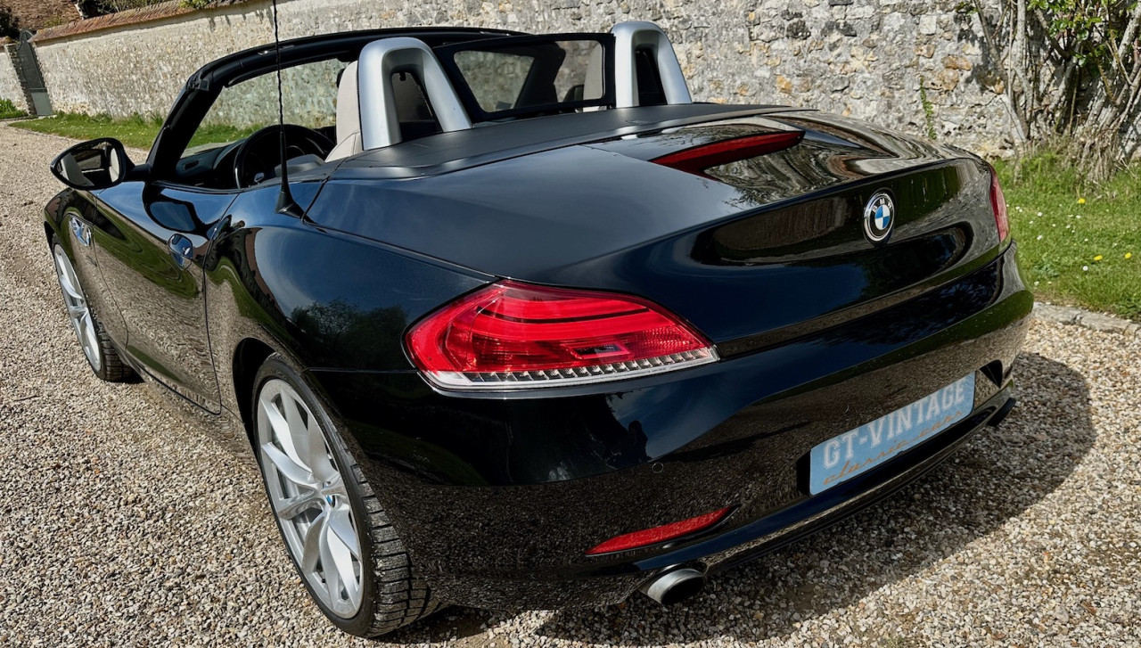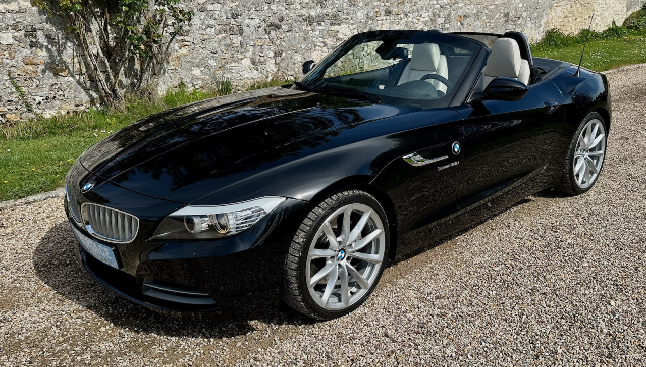 À vendre BMW Z4 S-Drive 35i de 2009 avec une belle configuration Noir Saphir métallisée dans une finition Luxe avec inserts décoratifs en bois précieux. Équipée d'un moteur 6 cylindres en ligne de 3 litres de 306 ch. et d'une boîte de vitesses automatique DKG 7 à 7 rapports, cette Z4 a été livrée neuve en Allemagne le 30 Avril 2009 et n'a parcouru qu'un total de 73 700 km. Cette BMW Z4 est très intéressante par sa finition et ses équipements.