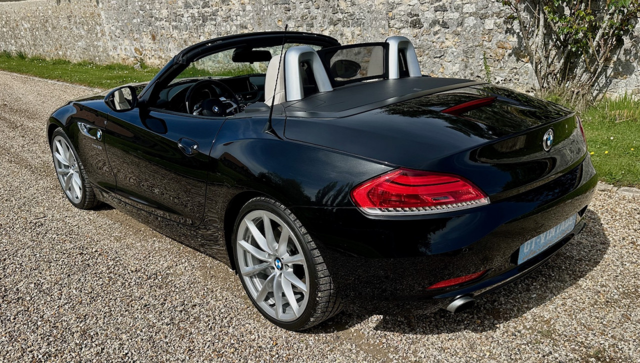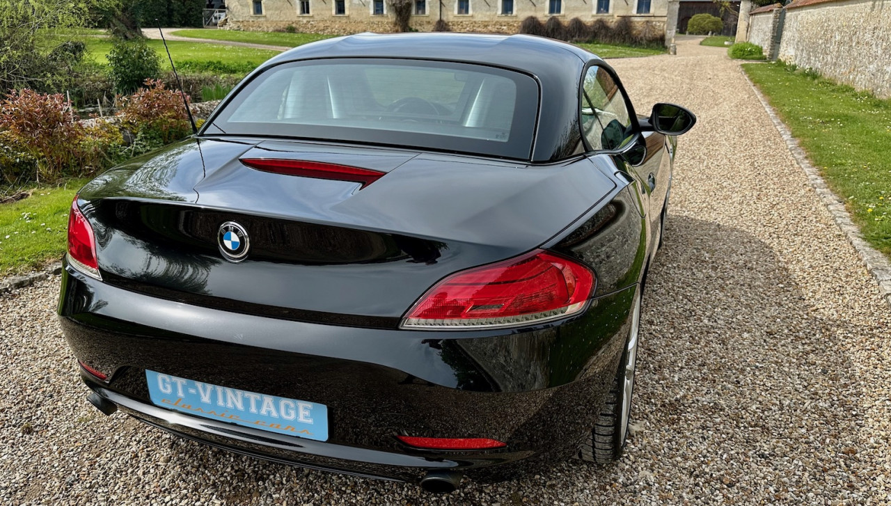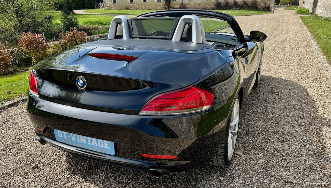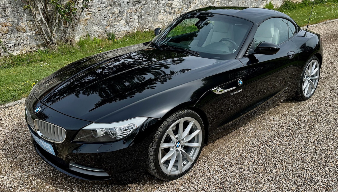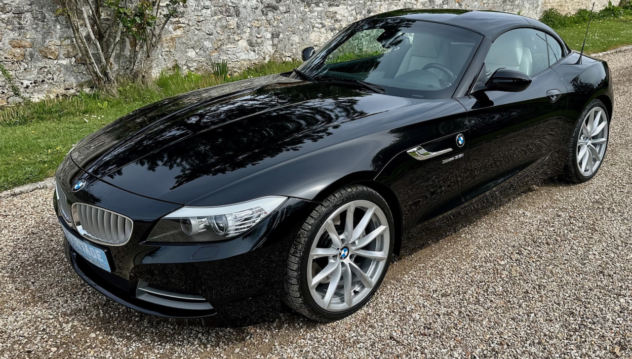À vendre BMW Z4 S-Drive 35i de 2009 avec une belle configuration Noir Saphir métallisée dans une finition Luxe avec inserts décoratifs en bois précieux. Équipée d'un moteur 6 cylindres en ligne de 3 litres de 306 ch. et d'une boîte de vitesses automatique DKG 7 à 7 rapports, cette Z4 a été livrée neuve en Allemagne le 30 Avril 2009 et n'a parcouru qu'un total de 73 700 km. Cette BMW Z4 est très intéressante par sa finition et ses équipements.