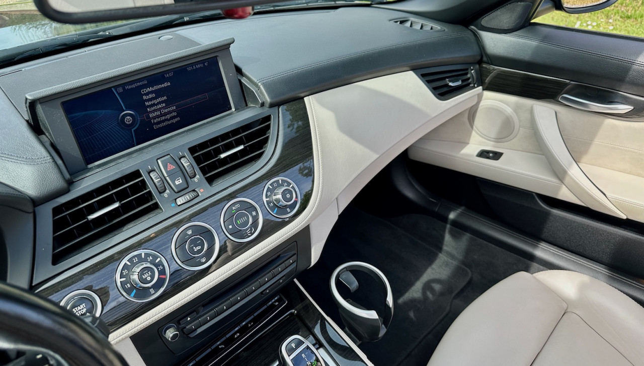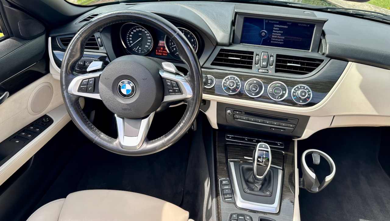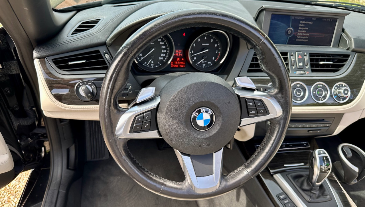 BMW Z4 Roadster 35i S-Drive LUXE, Noir Saphir métallisée, intérieur cuir Blanc Ivoire avec inserts décoratifs en finition bois ligne esthète, I-Drive, PDC, 306 CV
