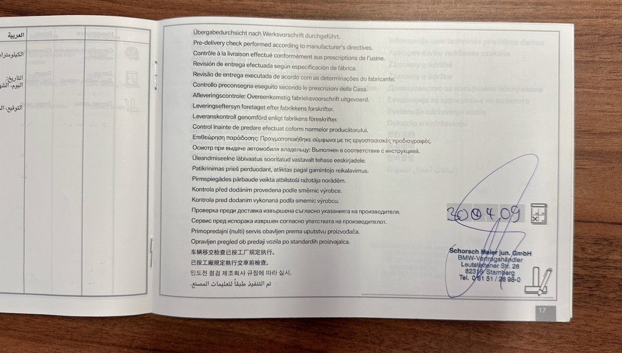 Entretien 2011 chez BMW à 16 020 km