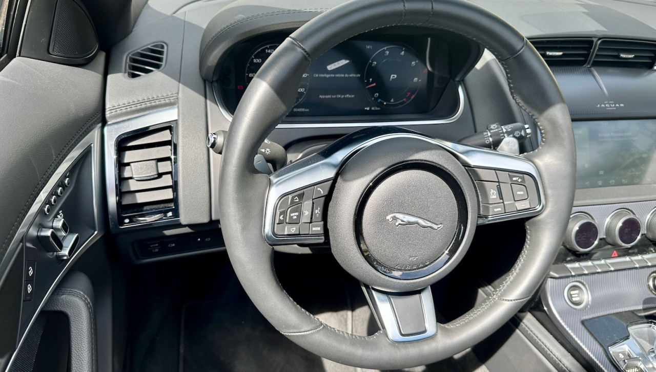 Nous proposons à la vente cette magnifique JAGUAR F-TYPE 2.0 cabriolet dans une belle couleur Gris Premium Carpathian métallisée avec un intérieur en cuir et alcantara noir en excellent état. Équipée d'un moteur 4 cylindres de 2L litres de 300 ch et d'une boîte automatique, ce cabriolet JAGUAR F-TYPE a été livré neuf en France le 23 Mars 2021 et n'a parcouru qu'un total de 4 900 km.