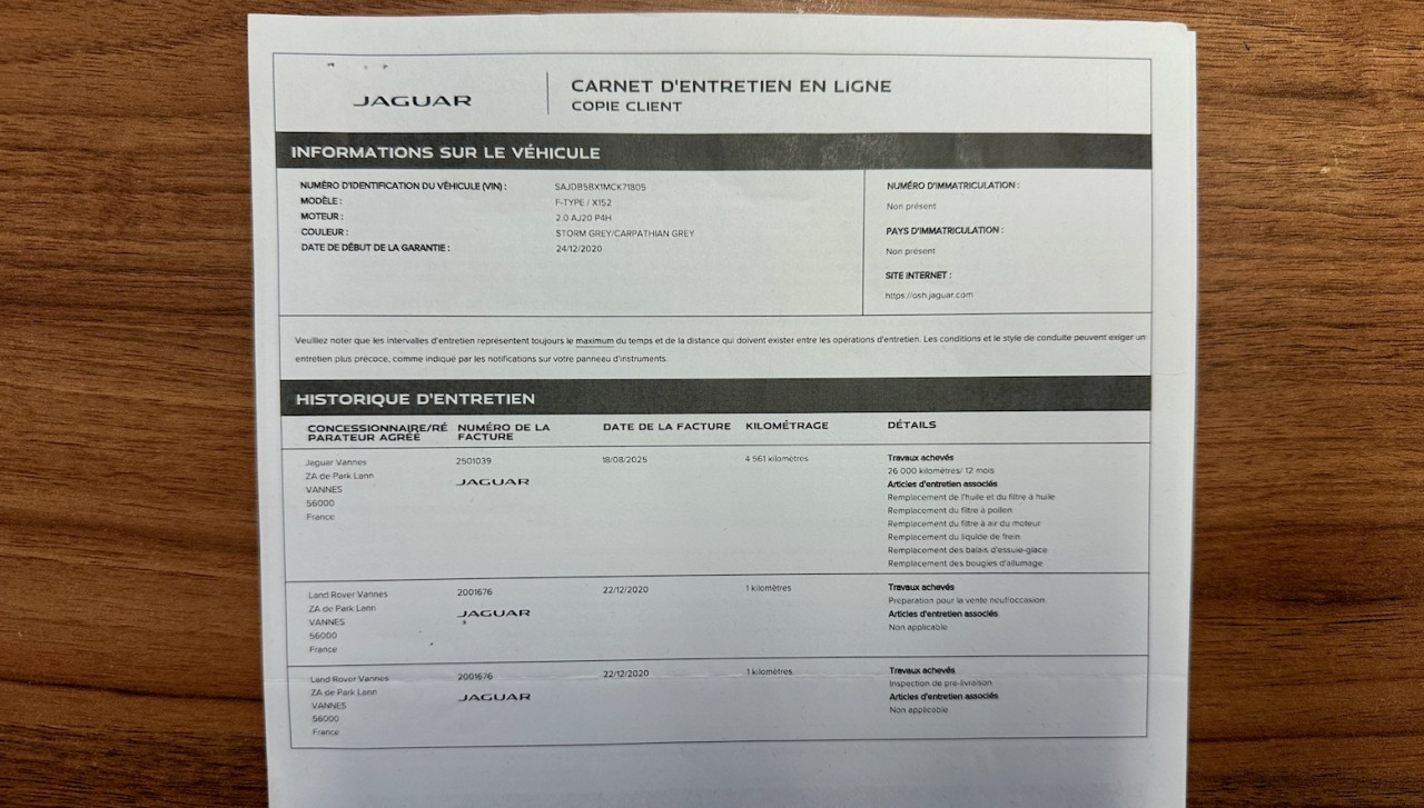 Entretien 2025 chez JAGUAR à 4 561 km